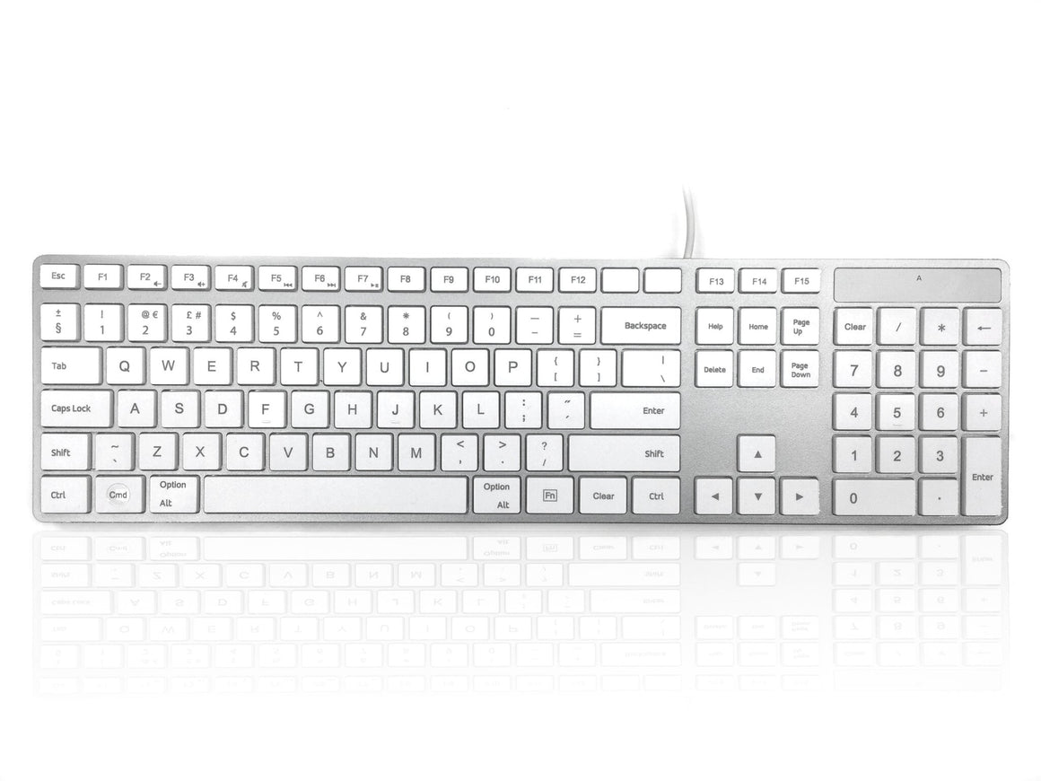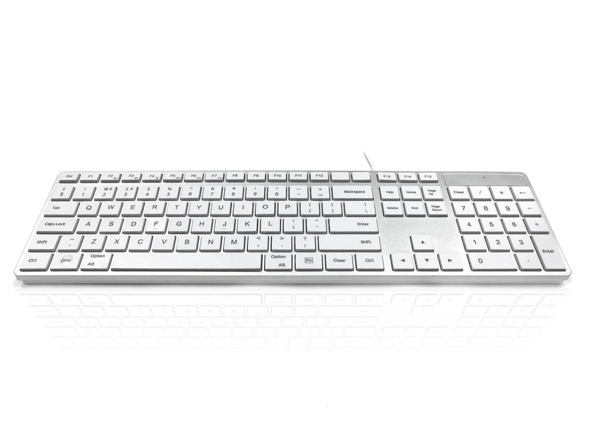With a silver upper chassis and white laser etched framed keys, the 301 MAC is ideal for both home, classroom and work. The additional multi-media functions and integrated number pad make this the most convenient partner
