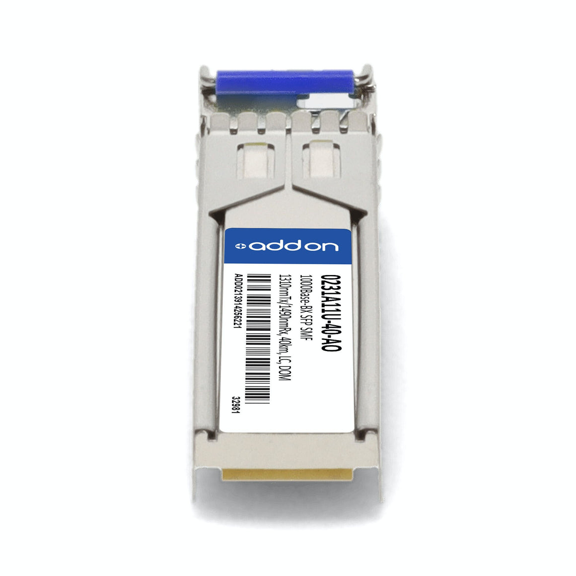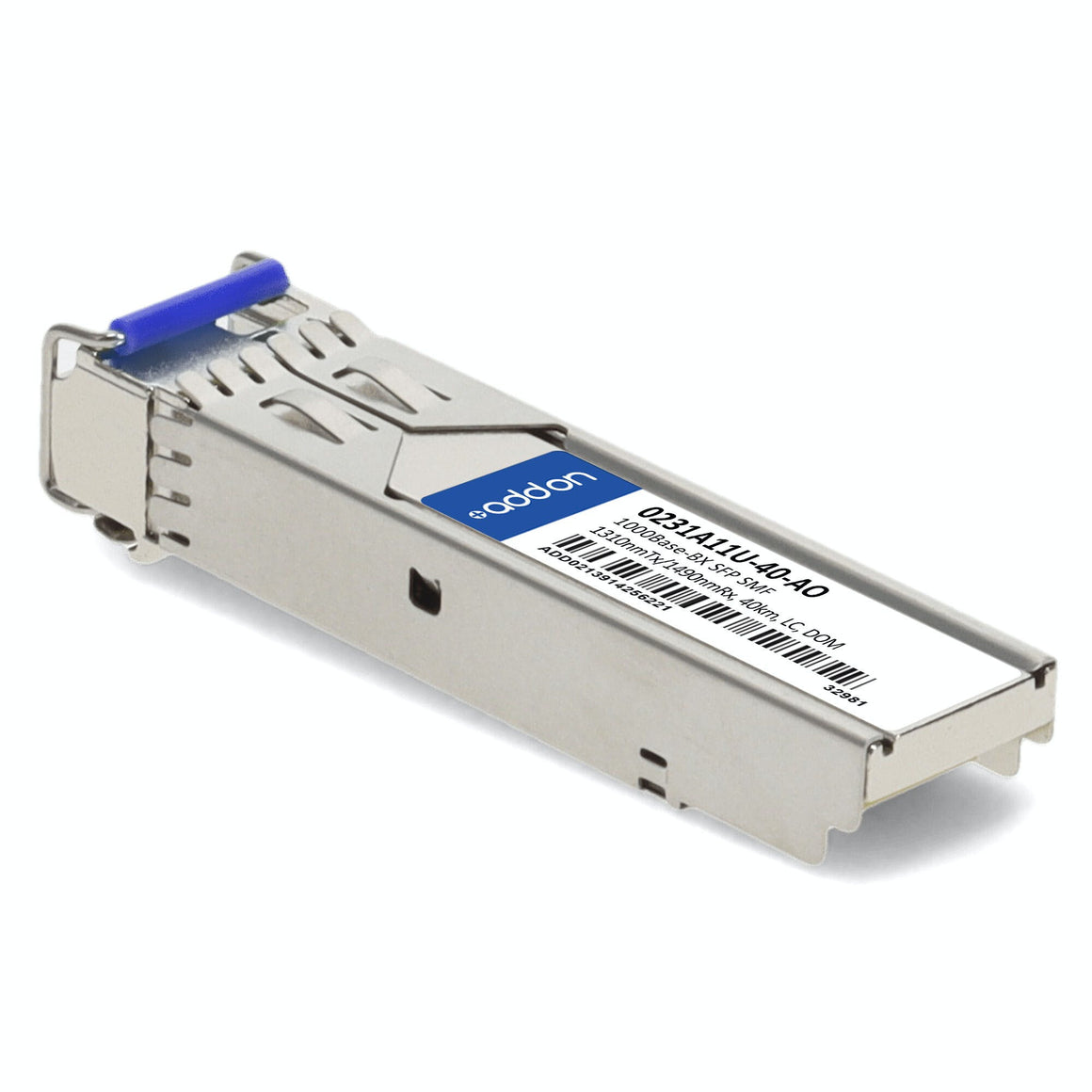 This Huawei® 0231A11U-40 compatible SFP transceiver provides 1000Base-BX throughput up to 40km over single-mode fiber (SMF) using a wavelength of 1310nmTx/1490nmRx via an LC connector. This bidirectional unit must be used with another transceiver or network appliance of complementing wavelengths. It is guaranteed to be 100% compatible with the equivalent Huawei® transceiver. This easy to install, hot swappable transceiver has been programmed, uniquely serialized and data-traffic and application tested to ensure that it will initialize and perform identically. Digital optical monitoring (DOM) support is also present to allow access to real-time operating parameters. This transceiver is Trade Agreements Act (TAA) compliant. We stand behind the quality of our products and proudly offer a limited lifetime warranty.