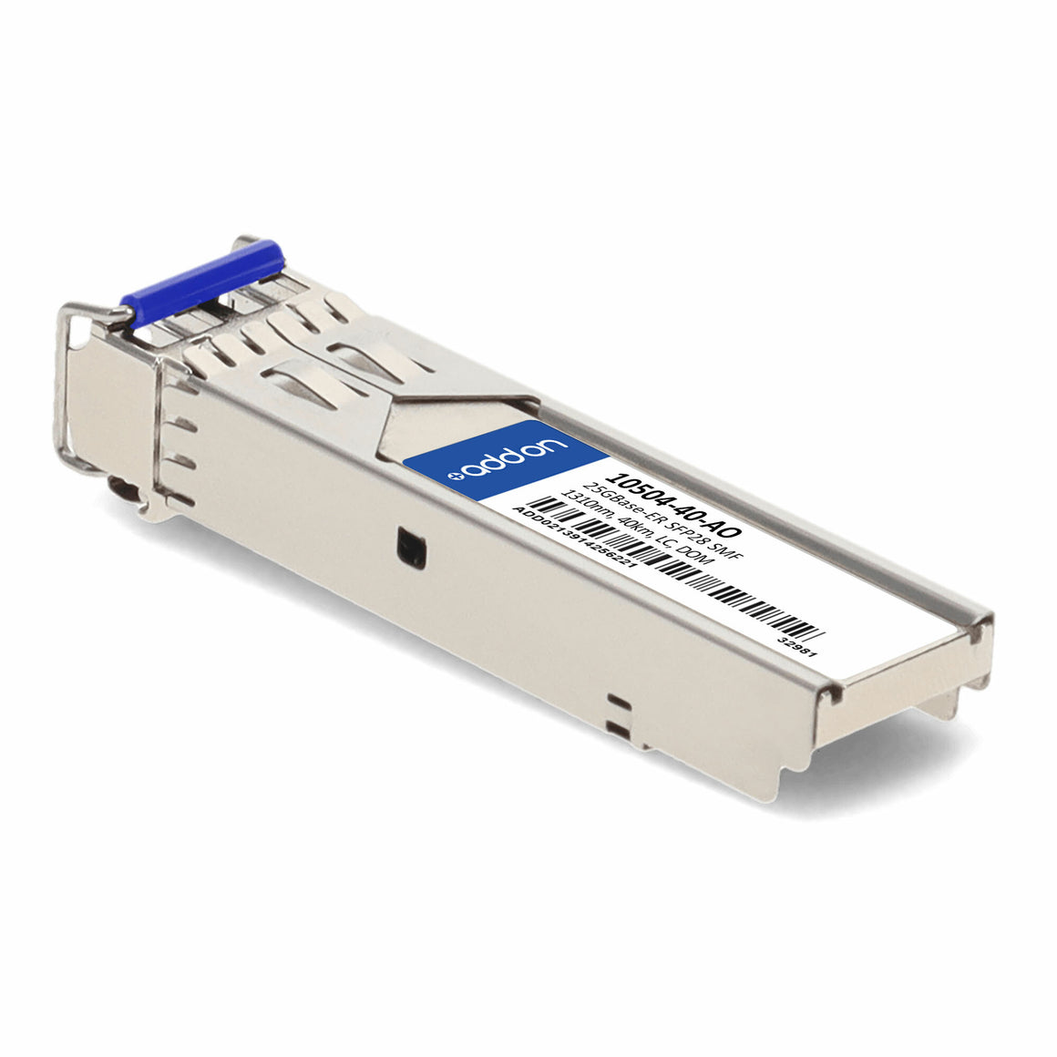 This Extreme Networks® 10504-40 compatible SFP28 transceiver provides 25GBase-ER throughput up to 40km over single-mode fiber (SMF) using a wavelength of 1310nm via an LC connector. It can operate at temperatures between 0 and 70C. Our transceiver is built to meet or exceed OEM specifications and is guaranteed to be 100% compatible with Extreme Networks®. It has been programmed, uniquely serialized, and tested for data-traffic and application to ensure that it will initialize and perform identically. All of our transceivers comply with Multi-Source Agreement (MSA) standards to provide seamless network integration. Additional product features include Digital Optical Monitoring (DOM) support which allows access to real-time operating parameters. This transceiver is Trade Agreements Act (TAA) compliant. We stand behind the quality of our products and proudly offer a limited lifetime warranty.