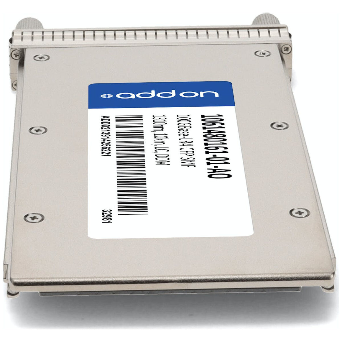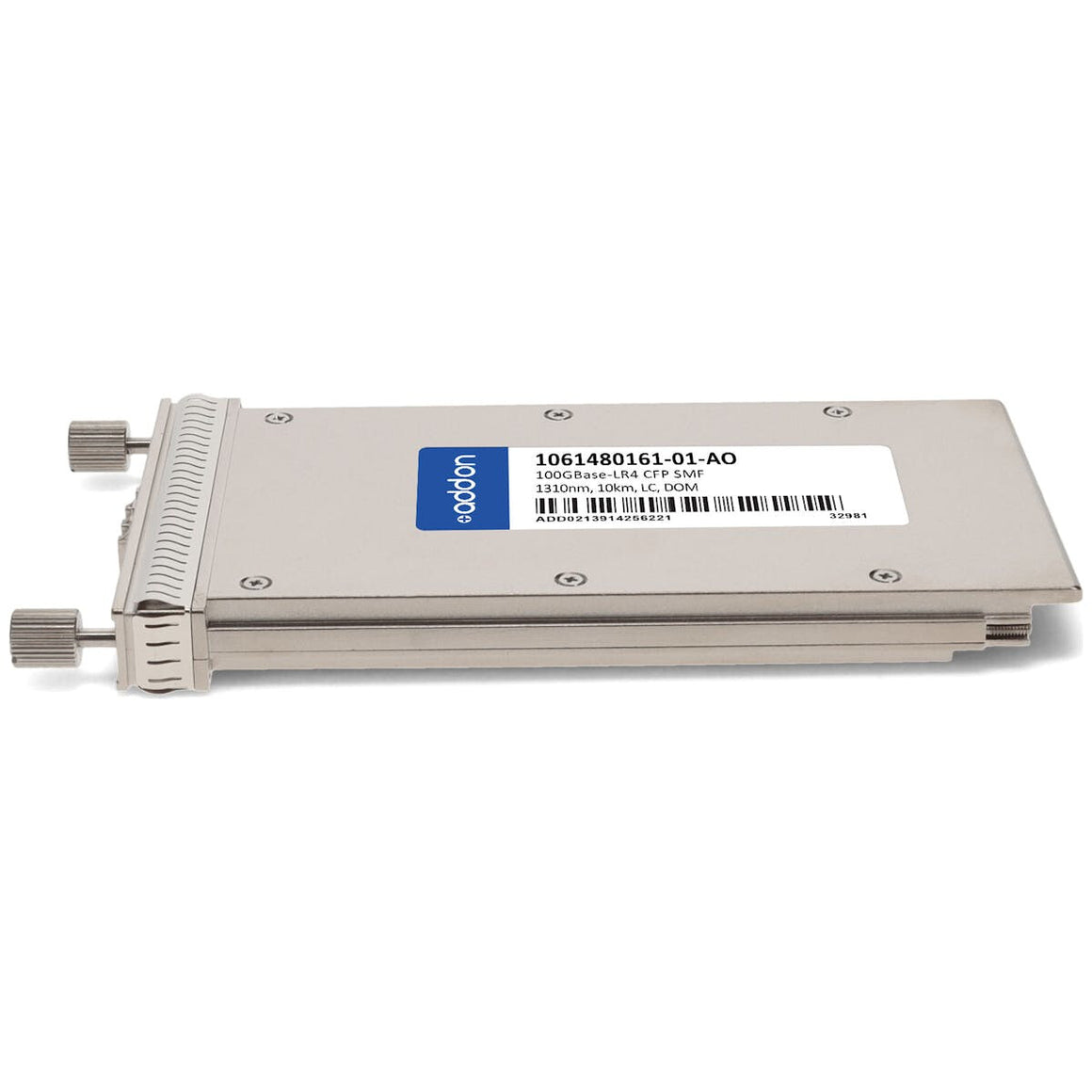 This ADVA® 1061480161-01 compatible CFP transceiver provides OTU4/100GBase-LR4 throughput up to 10km over single-mode fiber (SMF) using a wavelength of 1310nm via an LC connector. It is guaranteed to be 100% compatible with the equivalent ADVA® transceiver. This easy to install, hot swappable transceiver has been programmed, uniquely serialized and data-traffic and application tested to ensure that it will initialize and perform identically. Digital optical monitoring (DOM) support is also present to allow access to real-time operating parameters. This transceiver is Trade Agreements Act (TAA) compliant. We stand behind the quality of our products and proudly offer a limited lifetime warranty.