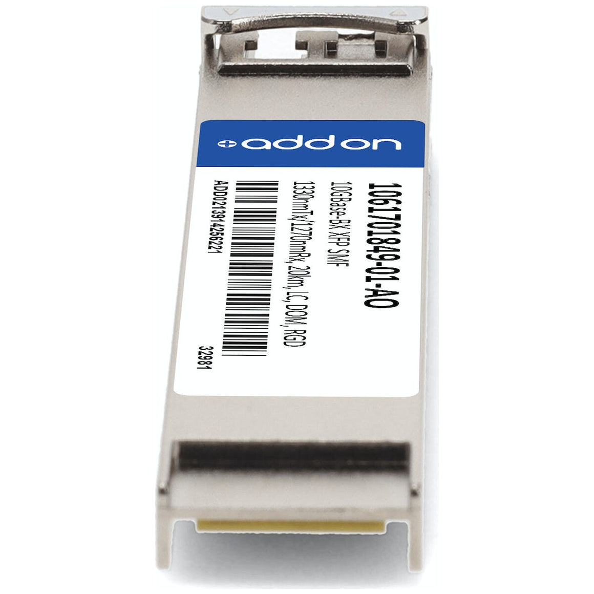 This ADVA® 1061701849-01 compatible SFP+ transceiver provides 10GBase-BX throughput up to 20km over single-mode fiber (SMF) using a wavelength of 1330nmTx/1270nmRx via an LC connector. This bidirectional unit must be used with another transceiver or network appliance of complimenting wavelengths. It can operate at temperatures between -40 and 85C. It is guaranteed to be 100% compatible with the equivalent ADVA® transceiver. This easy to install, hot swappable transceiver has been programmed, uniquely serialized and data-traffic and application tested to ensure that it will initialize and perform identically. Digital optical monitoring (DOM) support is also present to allow access to real-time operating parameters. This transceiver is Trade Agreements Act (TAA) compliant. We stand behind the quality of our products and proudly offer a limited lifetime warranty.