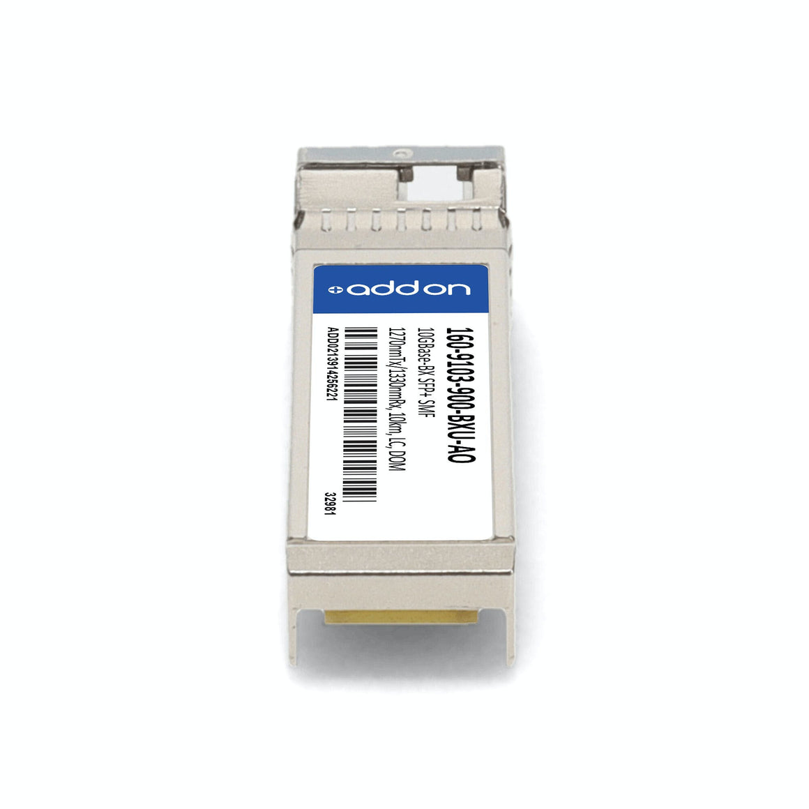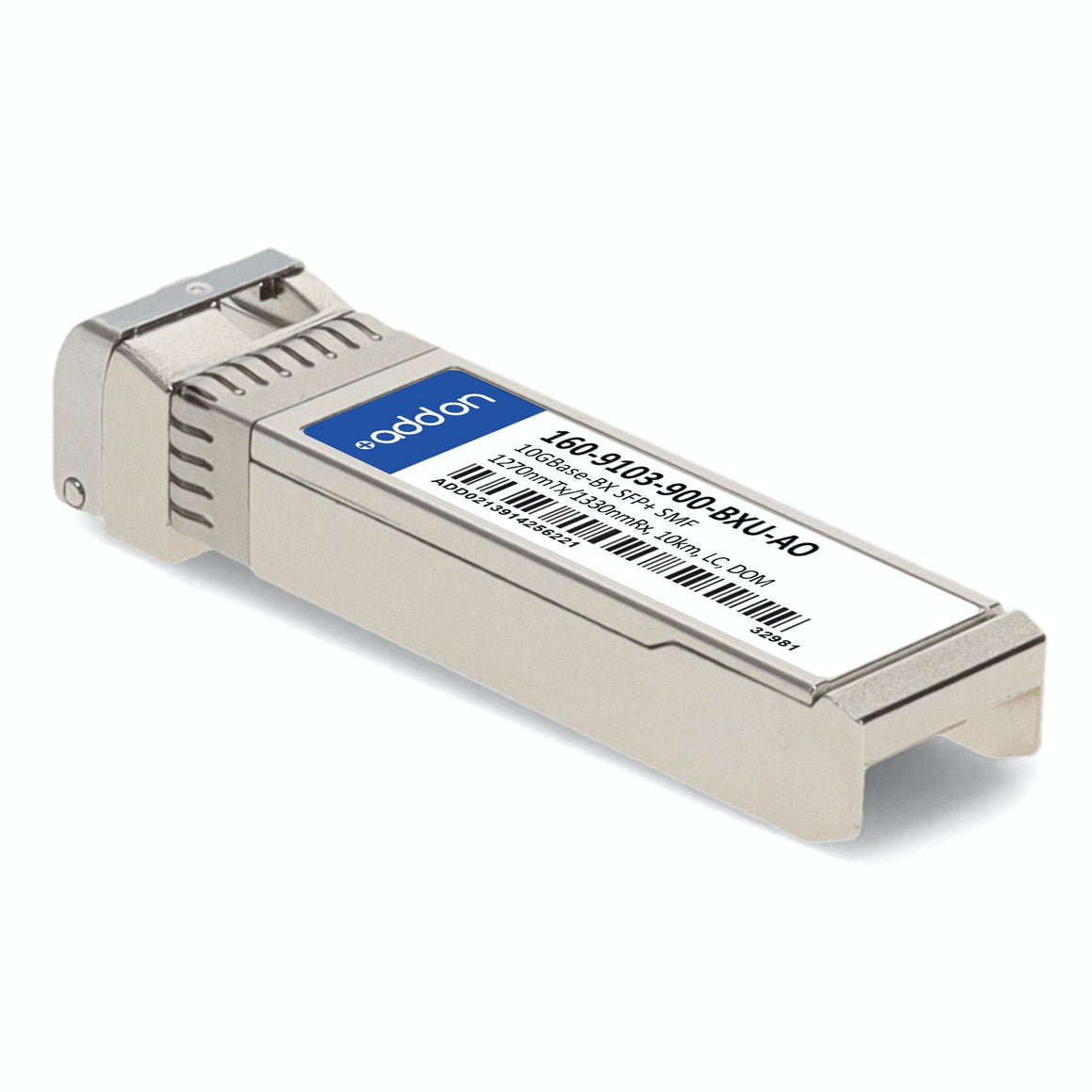 This Ciena® 160-9103-900-BXU compatible SFP+ transceiver provides 10GBase-BX throughput up to 10km over single-mode fiber (SMF) using a wavelength of 1270nmTx/1330nmRx via an LC connector. This bidirectional unit must be used with another transceiver or network appliance of complementing wavelengths. It can operate at temperatures between 0 and 70C. Our transceiver is built to meet or exceed OEM specifications and is guaranteed to be 100% compatible with Ciena®. It has been programmed, uniquely serialized, and tested for data-traffic and application to ensure that it will initialize and perform identically. All of our transceivers comply with Multi-Source Agreement (MSA) standards to provide seamless network integration. Additional product features include Digital Optical Monitoring (DOM) support which allows access to real-time operating parameters. We stand behind the quality of our products and proudly offer a limited lifetime warranty.