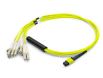 This is a 1m single-mode fiber (SMF) MPO/4xLC duplex fan-out yellow patch cable for Juniper. This cable utilizes a female (no pins) MPO connector on one end, and 8 LC (4 LC duplex) male plugs on the other end. This SMF 9/125 cable provides high-density connection for network equipment. Our MPO to 4xLC duplex cable provides savings in circuit card and rack space. In addition, it accommodates speeds up to 40 gigabits, commonly used in QSFP applications. This patch cable is recommended for connections between fiber patch panels, hubs, switches, media converters and routers, etc. Our patch cables are 100% compliant for all of your networking needs. They provide higher speeds and increased bandwidth, compared to conventional twisted-pair copper cable. Each cable is 100% optically tested for insertion loss before you take ownership. Now you have a cost effective solution to your network upgrade needs.