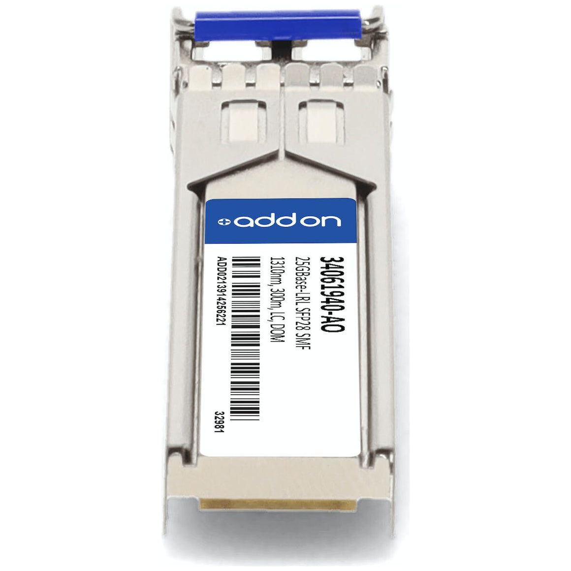 This Huawei® 34061940 compatible SFP28 transceiver provides 25GBase-LRL throughput up to 300m over single-mode fiber (SMF) using a wavelength of 1310nm via an LC connector. It is guaranteed to be 100% compatible with the equivalent Huawei® transceiver. This easy to install, hot swappable transceiver has been programmed, uniquely serialized and data-traffic and application tested to ensure that it will initialize and perform identically. Digital optical monitoring (DOM) support is also present to allow access to real-time operating parameters. This transceiver is Trade Agreements Act (TAA) compliant. We stand behind the quality of our products and proudly offer a limited lifetime warranty.