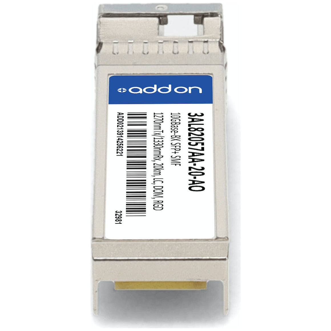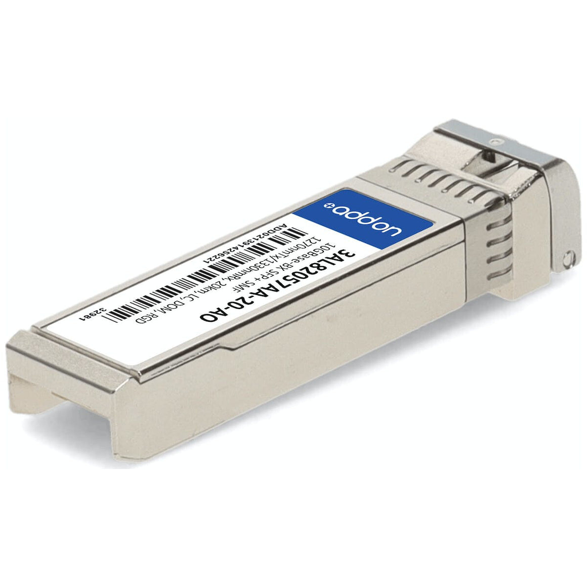This Alcatel-Lucent Nokia® 3AL82057AA-20 compatible SFP+ transceiver provides 10GBase-BX throughput up to 10km over single-mode fiber (SMF) using a wavelength of 1270nmTx/1330nmRx via an LC connector. It is also capable of withstanding rugged environments and can operate at temperatures between -40C to +85C. This bidirectional unit must be used with another transceiver or network appliance of complementing wavelengths. It is guaranteed to be 100% compatible with the equivalent Alcatel-Lucent Nokia® transceiver. This easy to install, hot swappable transceiver has been programmed, uniquely serialized and data-traffic and application tested to ensure that it will initialize and perform identically. Digital optical monitoring (DOM) support is also present to allow access to real-time operating parameters. This transceiver is Trade Agreements Act (TAA) compliant. We stand behind the quality of our products and proudly offer a limited lifetime warranty.