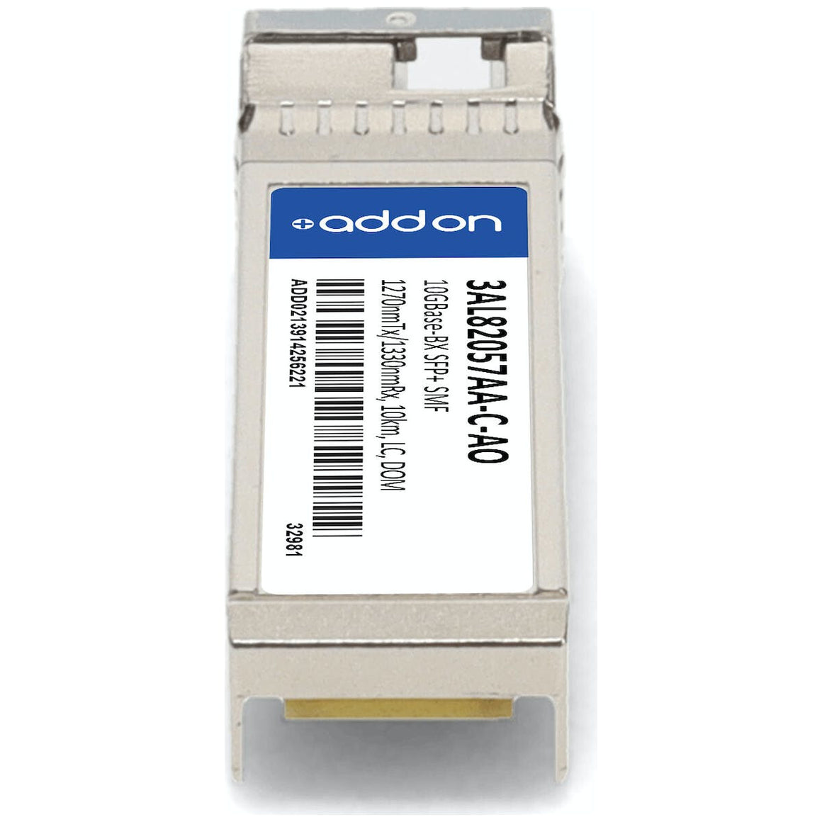 This Alcatel-Lucent Nokia® 3AL82057AA-C compatible SFP+ transceiver provides 10GBase-BX throughput up to 10km over single-mode fiber (SMF) using a wavelength of 1270nmTx/1330nmRx via an LC connector. It is also capable of withstanding rugged environments and can operate at temperatures between -40C to +85C. This bidirectional unit must be used with another transceiver or network appliance of complementing wavelengths. It is guaranteed to be 100% compatible with the equivalent Alcatel-Lucent Nokia® transceiver. This easy to install, hot swappable transceiver has been programmed, uniquely serialized and data-traffic and application tested to ensure that it will initialize and perform identically. Digital optical monitoring (DOM) support is also present to allow access to real-time operating parameters. This transceiver is Trade Agreements Act (TAA) compliant. We stand behind the quality of our products and proudly offer a limited lifetime warranty.