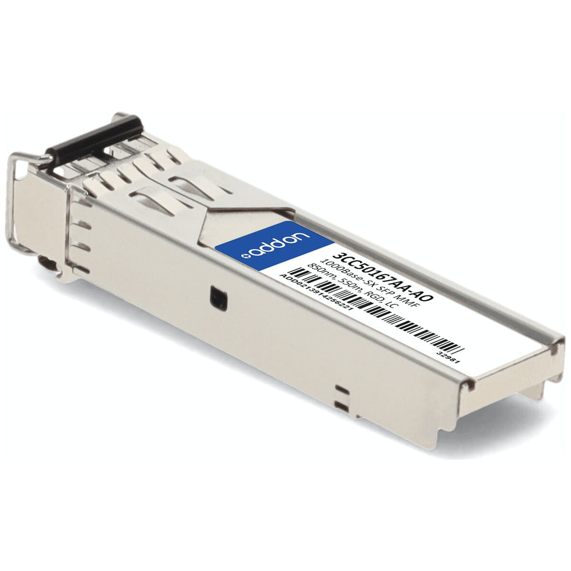 This Alcatel-Lucent Nokia® 3CC50167AA compatible SFP transceiver provides 1000Base-SX throughput up to 550m over multi-mode fiber (MMF) using a wavelength of 850nm via an LC connector. It can operate at temperatures between -40 and 85C. It is guaranteed to be 100% compatible with the equivalent Alcatel-Lucent Nokia® transceiver. This easy to install, hot swappable transceiver has been programmed, uniquely serialized and data-traffic and application tested to ensure that it will initialize and perform identically. Digital optical monitoring (DOM) support is also present to allow access to real-time operating parameters. This transceiver is Trade Agreements Act (TAA) compliant. We stand behind the quality of our products and proudly offer a limited lifetime warranty.