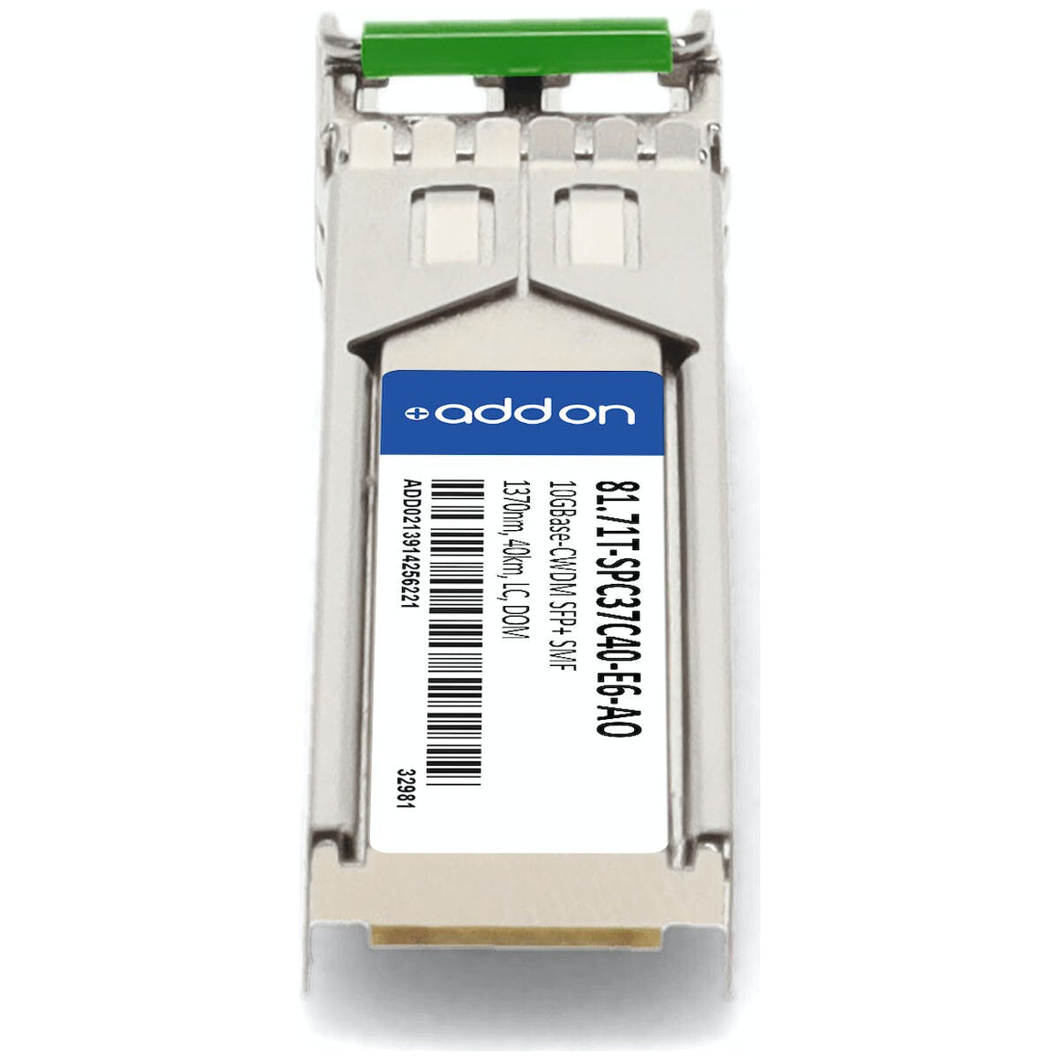 This Coriant® 81.71T-SPC37C40-E6 compatible SFP+ transceiver provides 10GBase-CWDM throughput up to 40km over single-mode fiber (SMF) using a wavelength of 1370nm via an LC connector. It is guaranteed to be 100% compatible with the equivalent Coriant® transceiver. This easy to install, hot swappable transceiver has been programmed, uniquely serialized and data-traffic and application tested to ensure that it will initialize and perform identically. Digital optical monitoring (DOM) support is also present to allow access to real-time operating parameters. This transceiver is Trade Agreements Act (TAA) compliant. We stand behind the quality of our products and proudly offer a limited lifetime warranty.