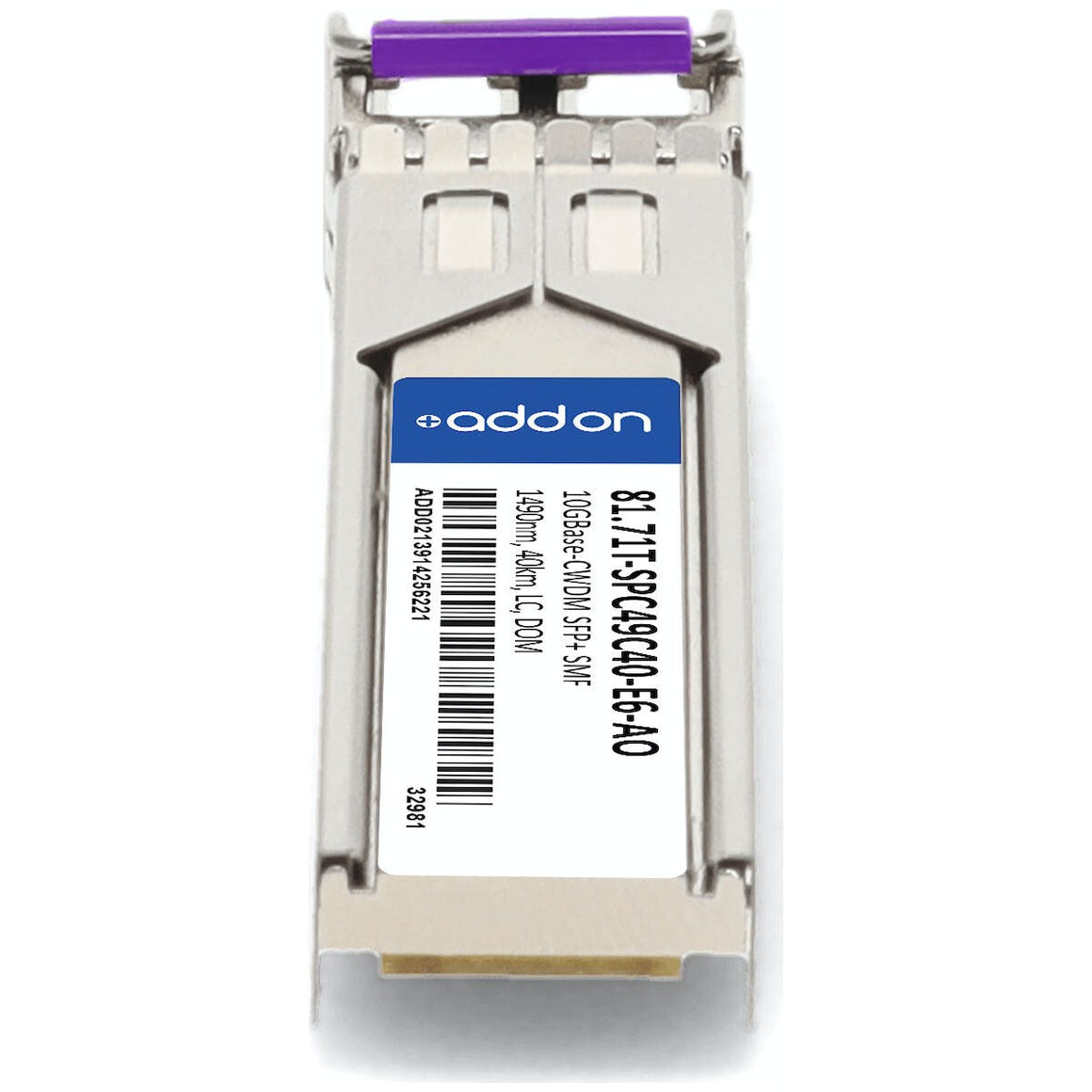 This Coriant® 81.71T-SPC49C40-E6 compatible SFP+ transceiver provides 10GBase-CWDM throughput up to 40km over single-mode fiber (SMF) using a wavelength of 1490nm via an LC connector. It is guaranteed to be 100% compatible with the equivalent Coriant® transceiver. This easy to install, hot swappable transceiver has been programmed, uniquely serialized and data-traffic and application tested to ensure that it will initialize and perform identically. Digital optical monitoring (DOM) support is also present to allow access to real-time operating parameters. This transceiver is Trade Agreements Act (TAA) compliant. We stand behind the quality of our products and proudly offer a limited lifetime warranty.