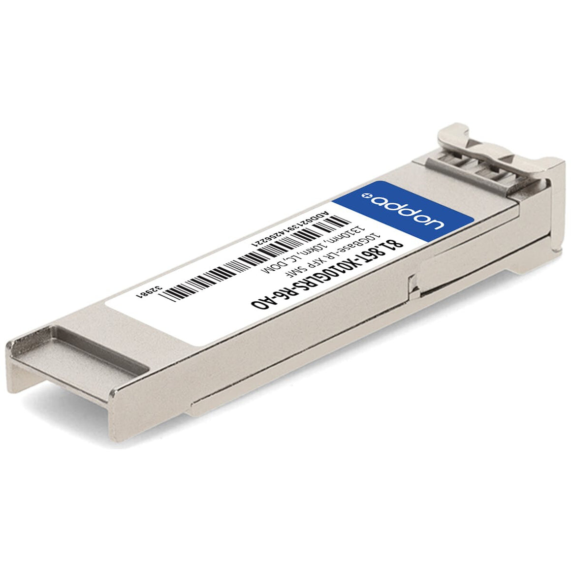 This Tellabs® 81.86T-X010GLRS-R6 compatible XFP transceiver provides 10GBase-LR throughput up to 10km over single-mode fiber (SMF) using a wavelength of 1310nm via an LC connector. It is guaranteed to be 100% compatible with the equivalent Tellabs® transceiver. This easy to install, hot swappable transceiver has been programmed, uniquely serialized and data-traffic and application tested to ensure that it will initialize and perform identically. Digital optical monitoring (DOM) support is also present to allow access to real-time operating parameters. This transceiver is Trade Agreements Act (TAA) compliant. We stand behind the quality of our products and proudly offer a limited lifetime warranty.