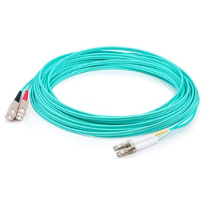 This is a 1m LC (male) to SC (male) Aqua Duplex Fiber Low Smoke Zero Halogen Patch Cable. An OM3 cable has a core size of 50 microns that supports 10 Gigabit Ethernet at lengths measuring up to 300 meters, and 40 Gigabit or 100 Gigabit Ethernet measuring up to 100 meters. This optical fiber, nonconductive, LSZH cable is best suited for use in interior fiber-optic applications. A duplex cable is a two-strand fiber optic patch cable that works best with transceivers that both transmit and receive. Our patch cables are 100% compliant for all of your networking needs. Our products are guaranteed by federal law to not affect or void OEM warranties.