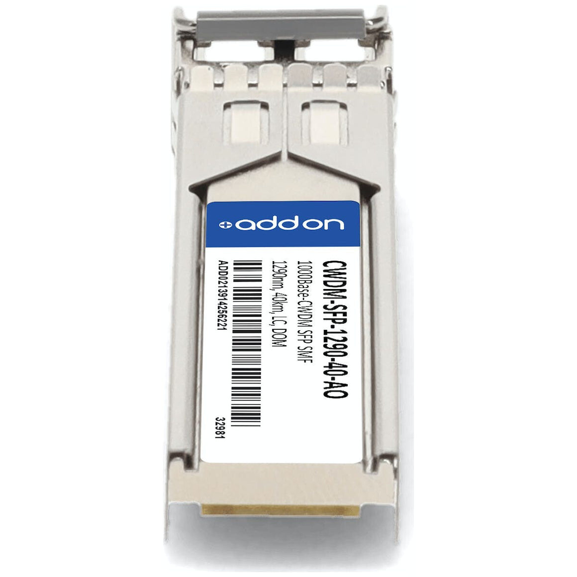This Cisco® CWDM-SFP-1290-40 compatible SFP transceiver provides 1000Base-CWDM throughput up to 40km over single-mode fiber (SMF) using a wavelength of 1290nm via an LC connector. It is guaranteed to be 100% compatible with the equivalent Cisco® transceiver. This easy to install, hot swappable transceiver has been programmed, uniquely serialized and data-traffic and application tested to ensure that it will initialize and perform identically. Digital optical monitoring (DOM) support is also present to allow access to real-time operating parameters. This transceiver is Trade Agreements Act (TAA) compliant. We stand behind the quality of our products and proudly offer a limited lifetime warranty.
