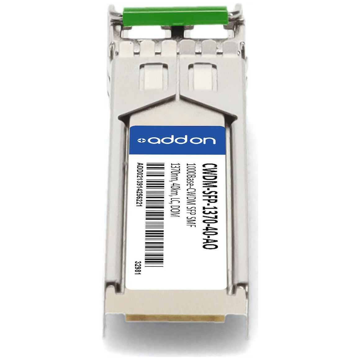 This Cisco® CWDM-SFP-1370-40 compatible SFP transceiver provides 1000Base-CWDM throughput up to 40km over single-mode fiber (SMF) using a wavelength of 1370nm via an LC connector. It is guaranteed to be 100% compatible with the equivalent Cisco® transceiver. This easy to install, hot swappable transceiver has been programmed, uniquely serialized and data-traffic and application tested to ensure that it will initialize and perform identically. Digital optical monitoring (DOM) support is also present to allow access to real-time operating parameters. This transceiver is Trade Agreements Act (TAA) compliant. We stand behind the quality of our products and proudly offer a limited lifetime warranty.