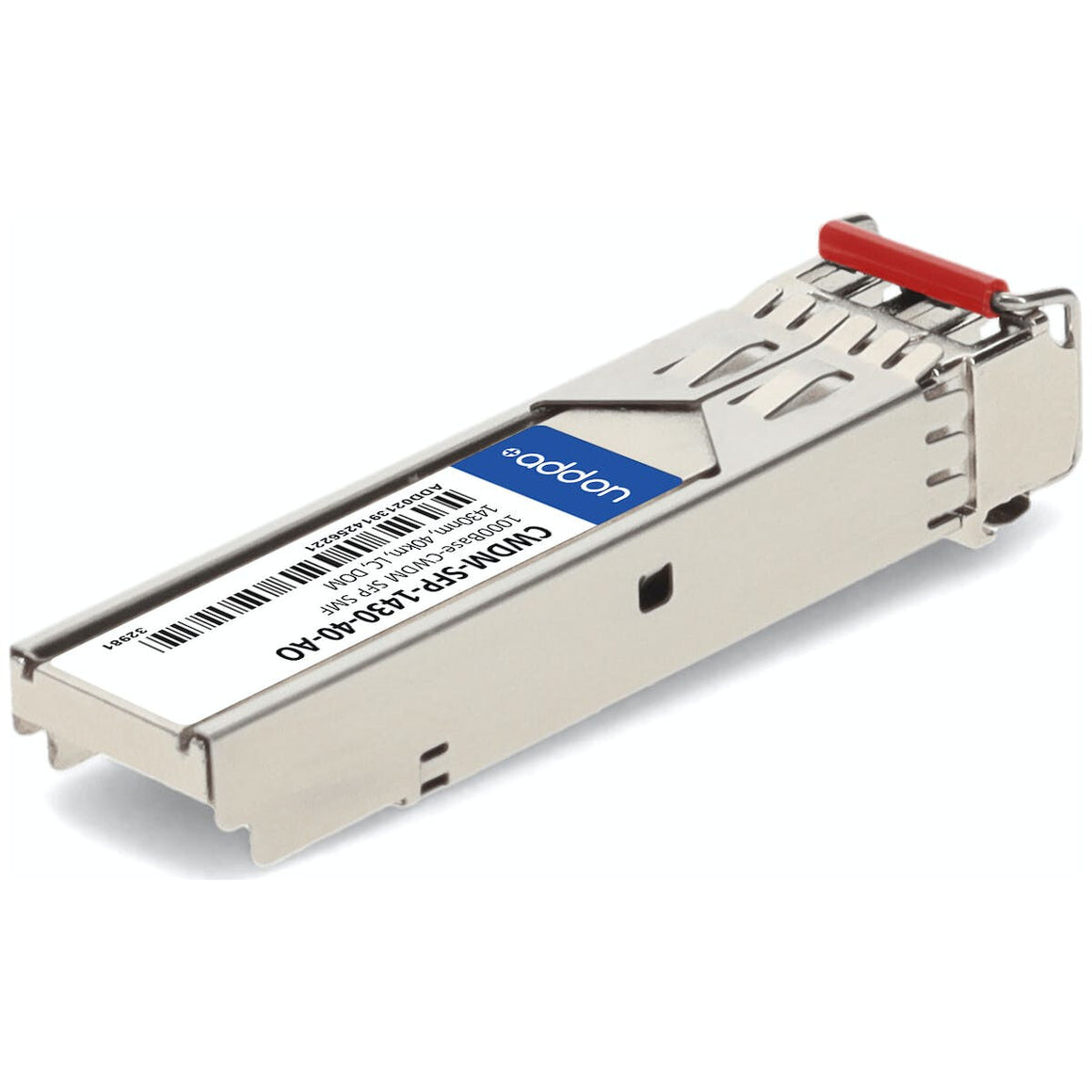This Cisco® CWDM-SFP-1430-40 compatible SFP transceiver provides 1000Base-CWDM throughput up to 40km over single-mode fiber (SMF) using a wavelength of 1430nm via an LC connector. It is guaranteed to be 100% compatible with the equivalent Cisco® transceiver. This easy to install, hot swappable transceiver has been programmed, uniquely serialized and data-traffic and application tested to ensure that it will initialize and perform identically. Digital optical monitoring (DOM) support is also present to allow access to real-time operating parameters. This transceiver is Trade Agreements Act (TAA) compliant. We stand behind the quality of our products and proudly offer a limited lifetime warranty.