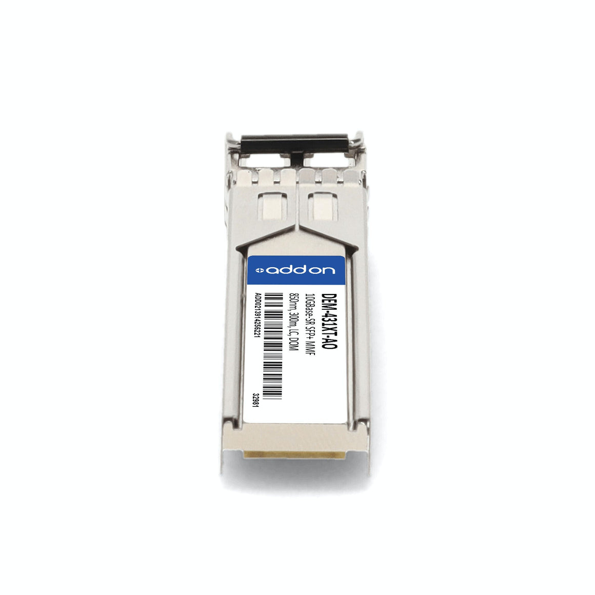 This D-Link® DEM-431XT-DD compatible SFP+ transceiver provides 10GBase-SR throughput up to 300m over multi-mode fiber (MMF) using a wavelength of 850nm via an LC connector. Our transceiver is built to meet or exceed OEM specifications and is guaranteed to be 100% compatible with D-Link®. It has been programmed, uniquely serialized, and tested for data-traffic and application to ensure that it will initialize and perform identically. All of our transceivers comply with Multi-Source Agreement (MSA) standards to provide seamless network integration. Additional product features include Digital Optical Monitoring (DOM) support which allows access to real-time operating parameters. This transceiver is Trade Agreements Act (TAA) compliant. We stand behind the quality of our products and proudly offer a limited lifetime warranty.