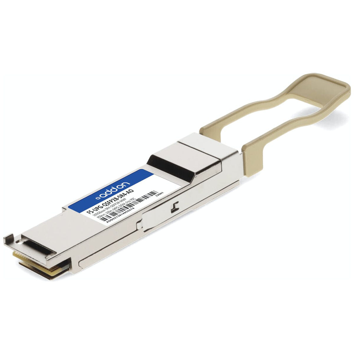 This F5 Networks F5-UPG-QSFP28-SR4 compatible QSFP28 transceiver provides 100GBase-SR4 throughput up to 100m over OM4 multi-mode fiber (MMF) using a wavelength of 850nm via an MPO connector. Our transceiver is built to meet or exceed OEM specifications and is guaranteed to be 100% compatible with F5 Networks. It has been programmed, uniquely serialized, and tested for data-traffic and application to ensure that it will initialize and perform identically. All of our transceivers comply with Multi-Source Agreement (MSA) standards to provide seamless network integration. Additional product features include Digital Optical Monitoring (DOM) support which allows access to real-time operating parameters. This transceiver is Trade Agreements Act (TAA) compliant. We stand behind the quality of our products and proudly offer a limited lifetime warranty.