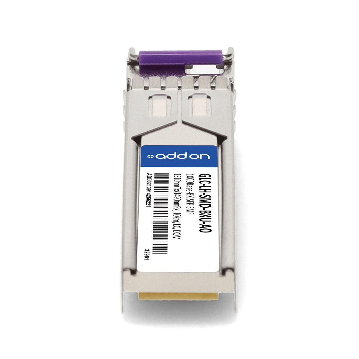 This Cisco® GLC-LH-SMD-BXU compatible SFP transceiver provides 1000Base-BX throughput up to 10km over single-mode fiber (SMF) using a wavelength of 1310nmTx/1490nmRx via an LC connector. This bidirectional unit must be used with another transceiver or network appliance of complementing wavelengths. It can operate at temperatures between 0 and 70C. Our transceiver is built to meet or exceed OEM specifications and is guaranteed to be 100% compatible with Cisco®. It has been programmed, uniquely serialized, and tested for data-traffic and application to ensure that it will initialize and perform identically. All of our transceivers comply with Multi-Source Agreement (MSA) standards to provide seamless network integration. Additional product features include Digital Optical Monitoring (DOM) support which allows access to real-time operating parameters. We stand behind the quality of our products and proudly offer a limited lifetime warranty.
