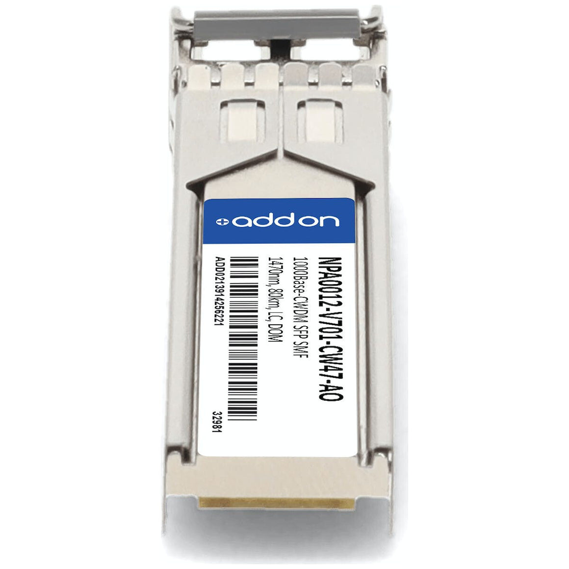This Net Insight® NPA0012-V701-CW47 compatible SFP transceiver provides 1000Base-CWDM throughput up to 80km over single-mode fiber (SMF) using a wavelength of 1470nm via an LC connector. It is guaranteed to be 100% compatible with the equivalent Net Insight® transceiver. This easy to install, hot swappable transceiver has been programmed, uniquely serialized and data-traffic and application tested to ensure that it will initialize and perform identically. Digital optical monitoring (DOM) support is also present to allow access to real-time operating parameters. This transceiver is Trade Agreements Act (TAA) compliant. We stand behind the quality of our products and proudly offer a limited lifetime warranty.