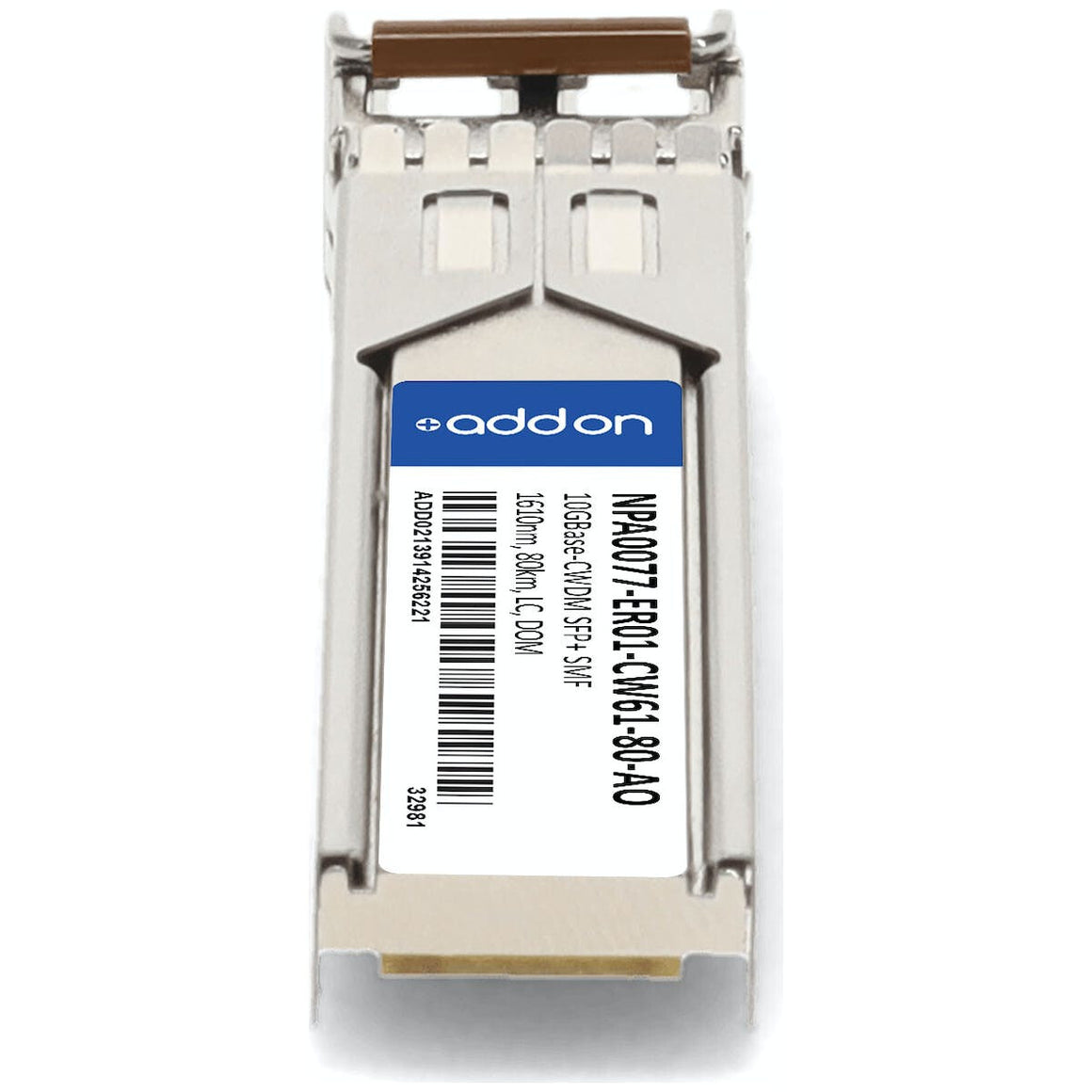 This Net Insight® NPA0077-ER01-CW61-80 compatible SFP+ transceiver provides 10GBase-CWDM throughput up to 80km over single-mode fiber (SMF) using a wavelength of 1610nm via an LC connector. It is guaranteed to be 100% compatible with the equivalent Net Insight® transceiver. This easy to install, hot swappable transceiver has been programmed, uniquely serialized and data-traffic and application tested to ensure that it will initialize and perform identically. Digital optical monitoring (DOM) support is also present to allow access to real-time operating parameters. This transceiver is Trade Agreements Act (TAA) compliant. We stand behind the quality of our products and proudly offer a limited lifetime warranty.