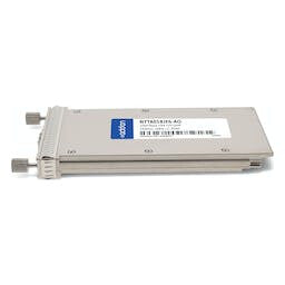 This Ciena NTTA01BJE6 compatible CFP transceiver provides 100GBase-LR4 throughput up to 10km over single-mode fiber (SMF) using a wavelength of 1310nm via an LC connector. It is guaranteed to be 100% compatible with the equivalent Ciena transceiver. This easy to install, hot swappable transceiver has been programmed, uniquely serialized and data-traffic and application tested to ensure that it will initialize and perform identically. Digital optical monitoring (DOM) support is also present to allow access to real-time operating parameters. This transceiver is Trade Agreements Act (TAA) compliant. We stand behind the quality of our products and proudly offer a limited lifetime warranty.