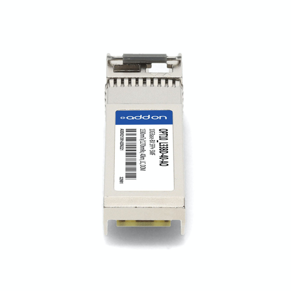 This ECI Telecom® OPT10_L33BD-40 compatible SFP+ transceiver provides 10GBase-BX throughput up to 40km over single-mode fiber (SMF) using a wavelength of 1330nmTx/1270nmRx via an LC connector. This bidirectional unit must be used with another transceiver or network appliance of complementing wavelengths. It is guaranteed to be 100% compatible with the equivalent ECI Telecom® transceiver. This easy to install, hot swappable transceiver has been programmed, uniquely serialized and data-traffic and application tested to ensure that it will initialize and perform identically. Digital optical monitoring (DOM) support is also present to allow access to real-time operating parameters. This transceiver is Trade Agreements Act (TAA) compliant. We stand behind the quality of our products and proudly offer a limited lifetime warranty.