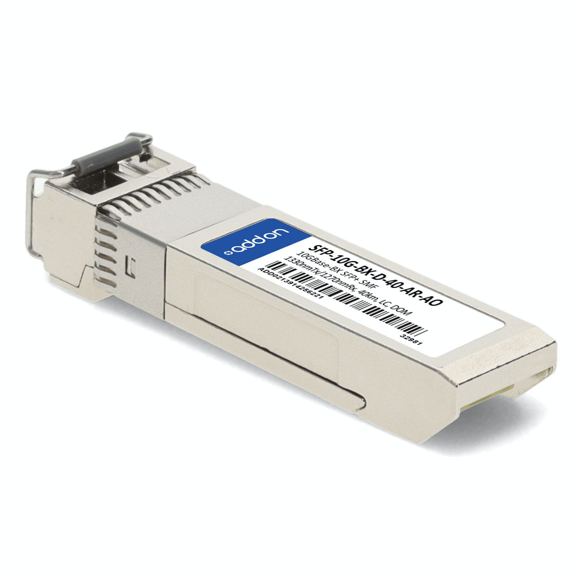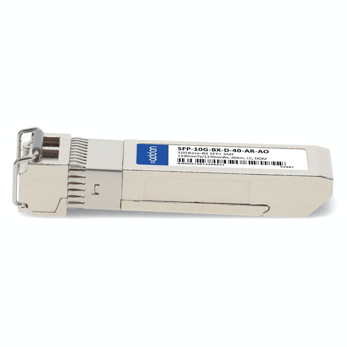 This Arista Networks® SFP-10G-BX-D-40-AR compatible SFP+ transceiver provides 10GBase-BX throughput up to 40km over single-mode fiber (SMF) using a wavelength of 1330nmTx/1270nmRx via an LC connector. This bidirectional unit must be used with another transceiver or network appliance of complementing wavelengths. It can operate at temperatures between 0 and 70C. Our transceiver is built to meet or exceed OEM specifications and is guaranteed to be 100% compatible with Arista Networks®. It has been programmed, uniquely serialized, and tested for data-traffic and application to ensure that it will initialize and perform identically. All of our transceivers comply with Multi-Source Agreement (MSA) standards to provide seamless network integration. Additional product features include Digital Optical Monitoring (DOM) support which allows access to real-time operating parameters. We stand behind the quality of our products and proudly offer a limited lifetime warranty.