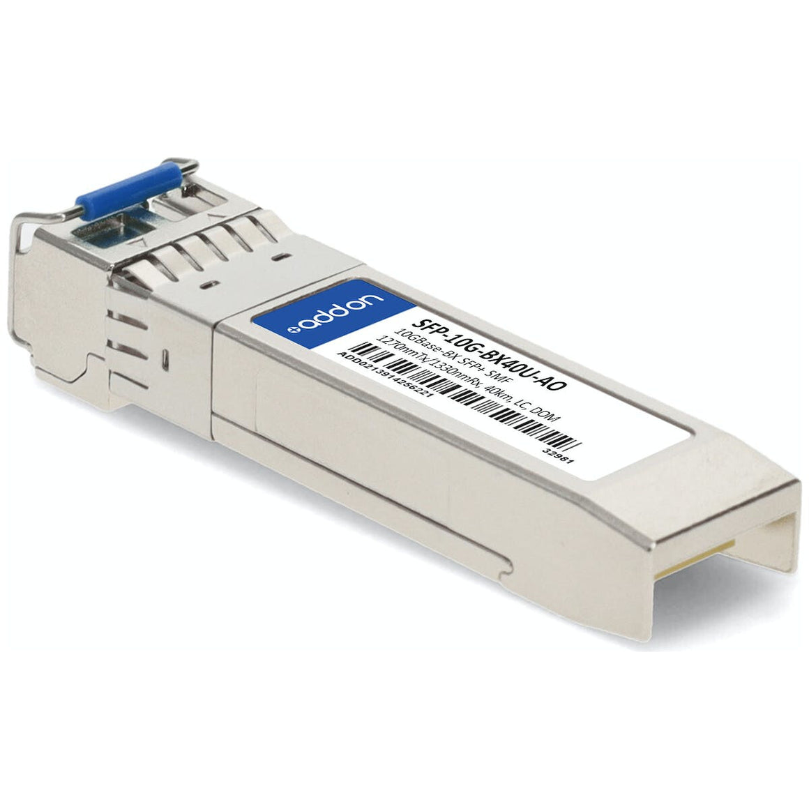 This Cisco® compatible SFP+ transceiver provides 10GBase-BX throughput up to 40km over single-mode fiber (SMF) using a wavelength of 1270nmTx/1330nmRx via an LC connector. This bidirectional unit must be used with another transceiver or network appliance of complementing wavelengths. It can operate at temperatures between 0 and 70C. Our transceiver is built to meet or exceed OEM specifications and is guaranteed to be 100% compatible with Cisco®. It has been programmed, uniquely serialized, and tested for data-traffic and application to ensure that it will initialize and perform identically. All of our transceivers comply with Multi-Source Agreement (MSA) standards to provide seamless network integration. Additional product features include Digital Optical Monitoring (DOM) support which allows access to real-time operating parameters. This transceiver is Trade Agreements Act (TAA) compliant. We stand behind the quality of our products and proudly offer a limited lifetime warranty.