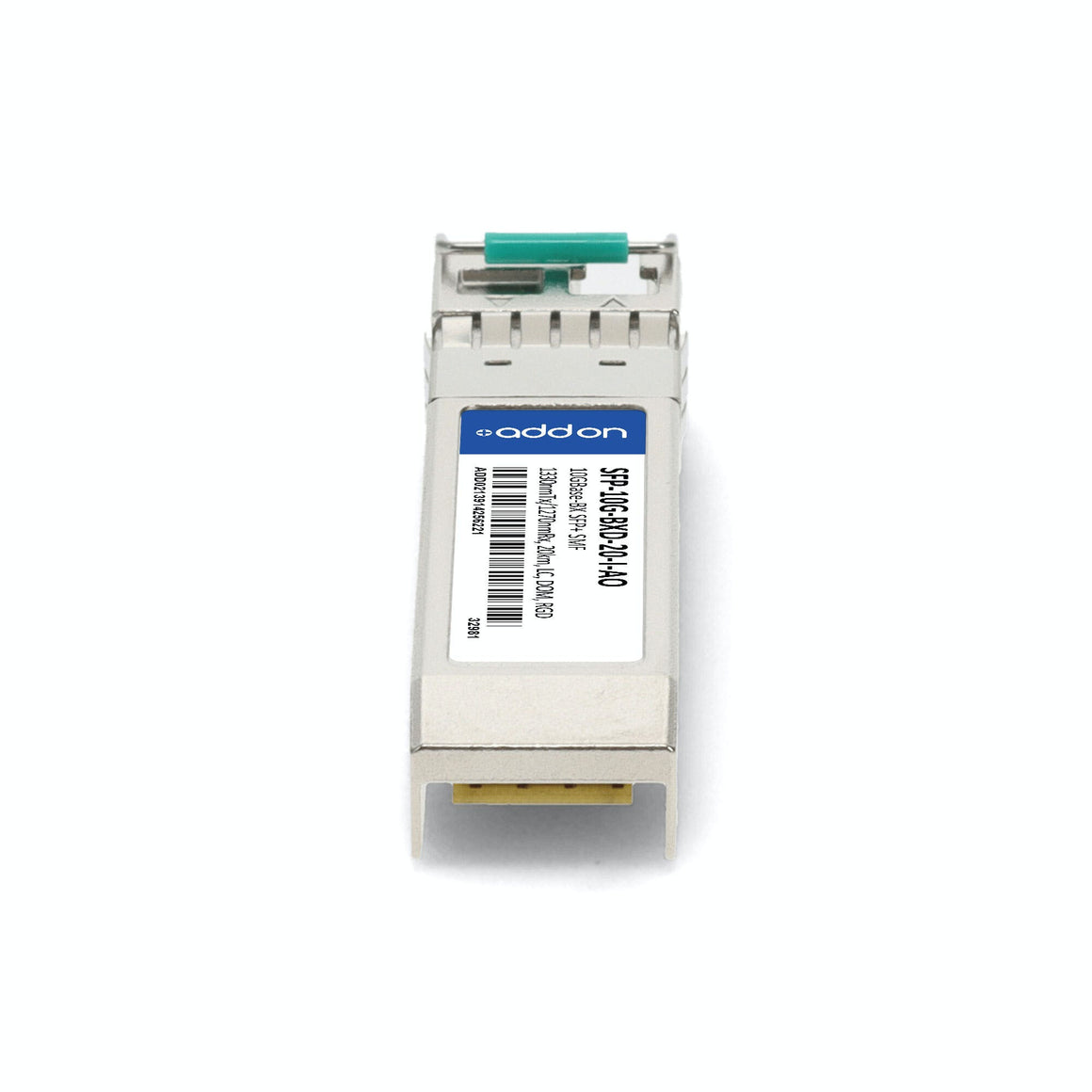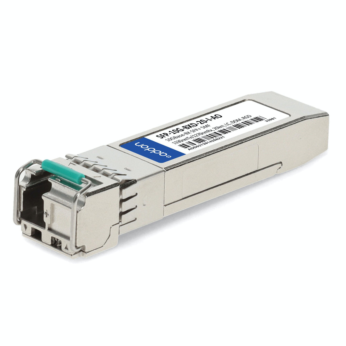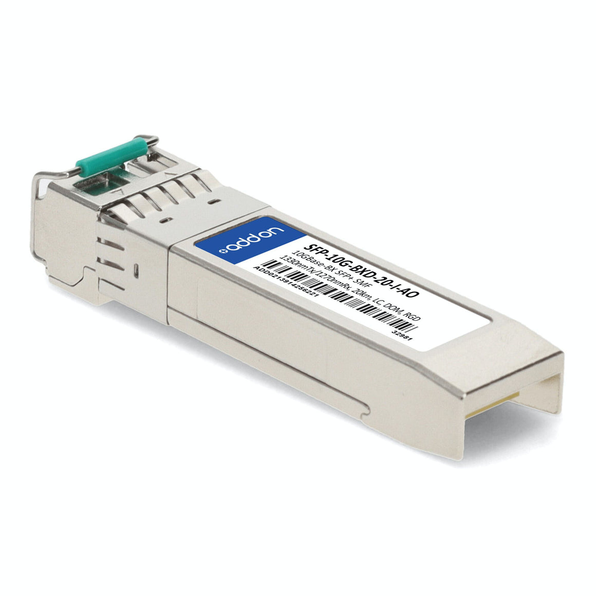This Cisco® SFP-10G-BXD-20-I compatible SFP+ transceiver provides 10GBase-BX throughput up to 20km over single-mode fiber (SMF) using a wavelength of 1330nmTx/1270nmRx via an LC connector. This bidirectional unit must be used with another transceiver or network appliance of complementing wavelengths. It can operate at temperatures between -40 and 85C. It is guaranteed to be 100% compatible with the equivalent Cisco® transceiver. This easy to install, hot swappable transceiver has been programmed, uniquely serialized and data-traffic and application tested to ensure that it will initialize and perform identically. Digital optical monitoring (DOM) support is also present to allow access to real-time operating parameters. This transceiver is Trade Agreements Act (TAA) compliant. We stand behind the quality of our products and proudly offer a limited lifetime warranty.