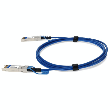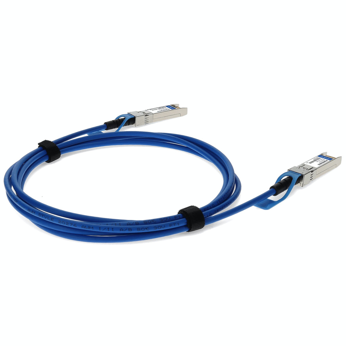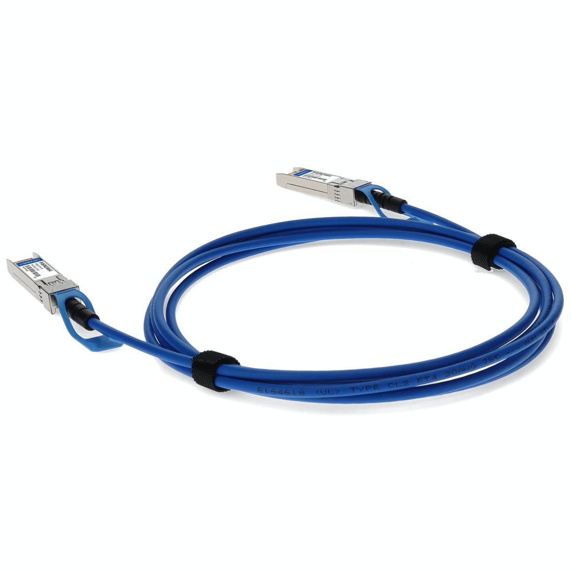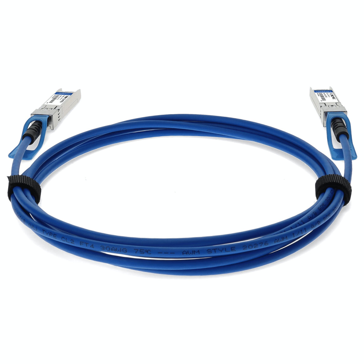 This is an MSA compliant 10GBase-CU SFP+ to SFP+ blue direct attach cable that operates over passive copper with a maximum reach of 2.5m (8.2ft). It has been programmed, uniquely serialized, and data-traffic and application tested to ensure it is 100% compliant and functional. This direct attach cable is TAA (Trade Agreements Act) compliant, and is built to comply with MSA (Multi-Source Agreement) standards. We stand behind the quality of our products and proudly offer a limited lifetime warranty.