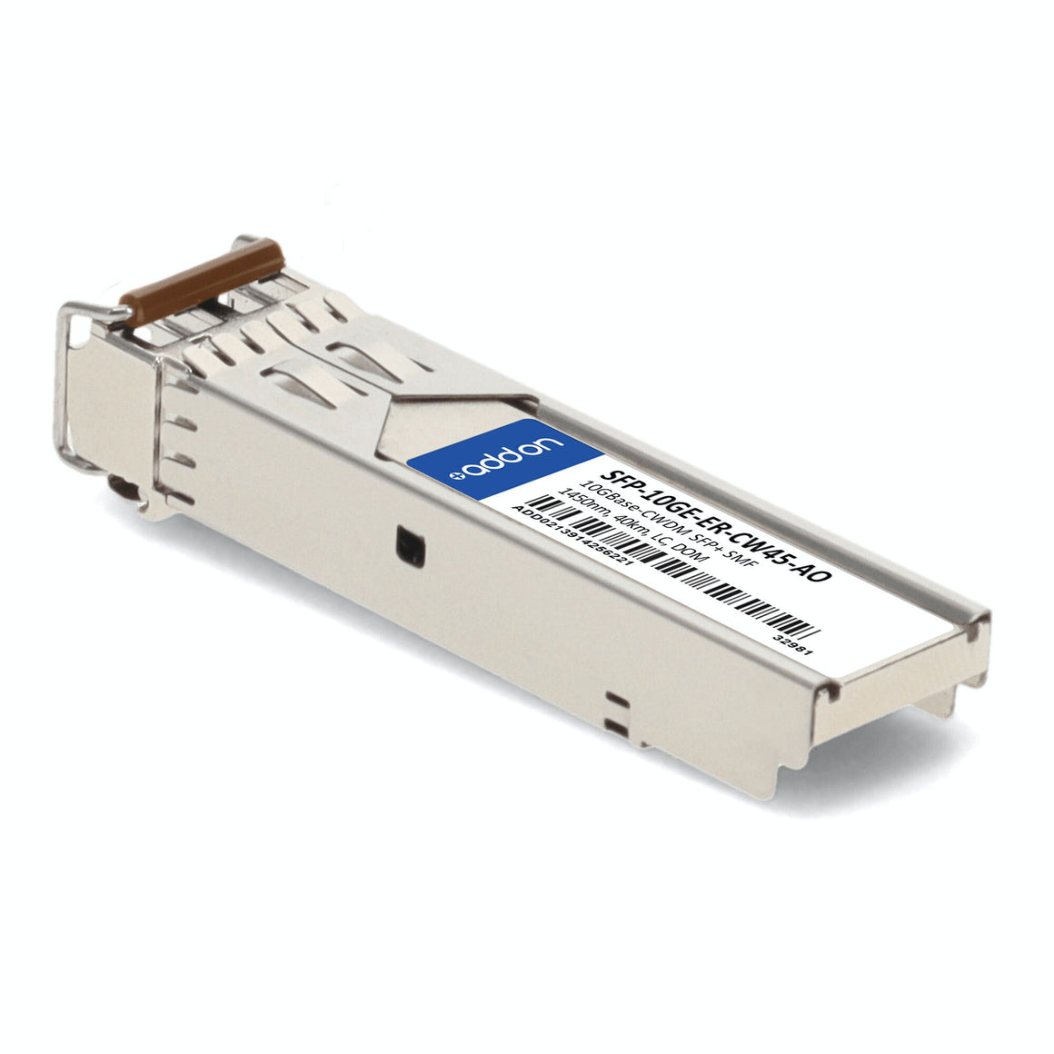 This Juniper Networks® SFP-10GE-ER-CW45 compatible SFP+ transceiver provides 10GBase-CWDM throughput up to 40km over single-mode fiber (SMF) using a wavelength of 1450nm via an LC connector. It is guaranteed to be 100% compatible with the equivalent Juniper Networks® transceiver. This easy to install, hot swappable transceiver has been programmed, uniquely serialized and data-traffic and application tested to ensure that it will initialize and perform identically. Digital optical monitoring (DOM) support is also present to allow access to real-time operating parameters. This transceiver is Trade Agreements Act (TAA) compliant. We stand behind the quality of our products and proudly offer a limited lifetime warranty.