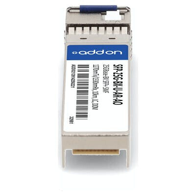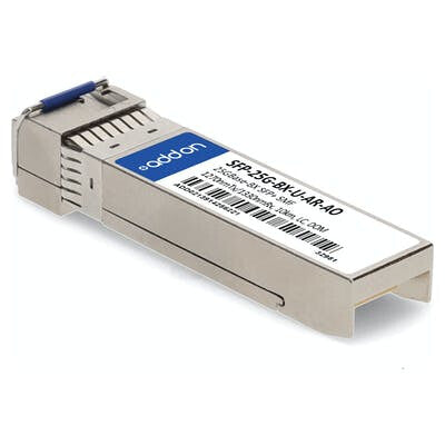 This Arista Networks® SFP-25G-BX-U-AR compatible SFP+ transceiver provides 25GBase-BX throughput up to 10km over single-mode fiber (SMF) using a wavelength of 1270nmTx/1330nmRx via an LC connector. This bidirectional unit must be used with another transceiver or network appliance of complementing wavelengths. It is guaranteed to be 100% compatible with the equivalent Arista Networks® transceiver. This easy to install, hot swappable transceiver has been programmed, uniquely serialized and data-traffic and application tested to ensure that it will initialize and perform identically. Digital optical monitoring (DOM) support is also present to allow access to real-time operating parameters. This transceiver is Trade Agreements Act (TAA) compliant. We stand behind the quality of our products and proudly offer a limited lifetime warranty.