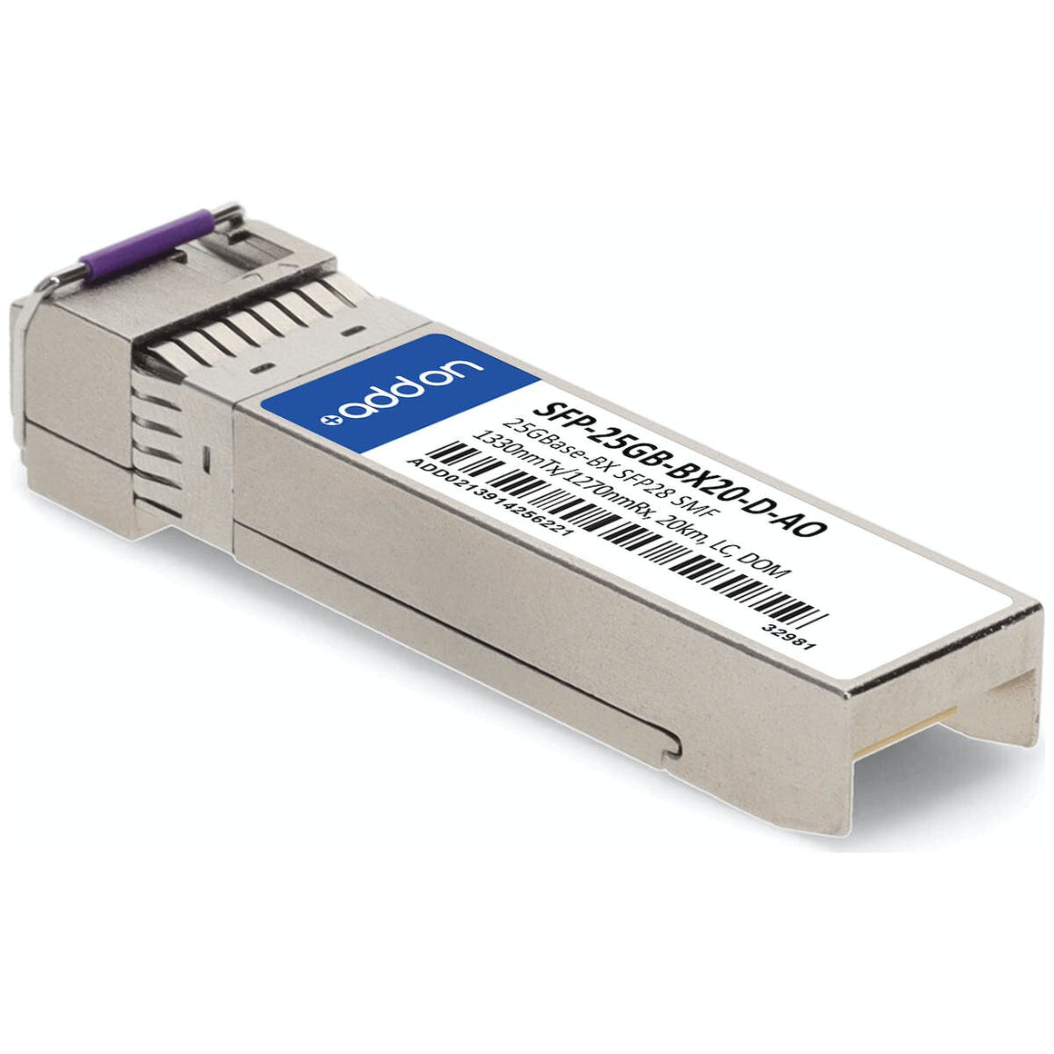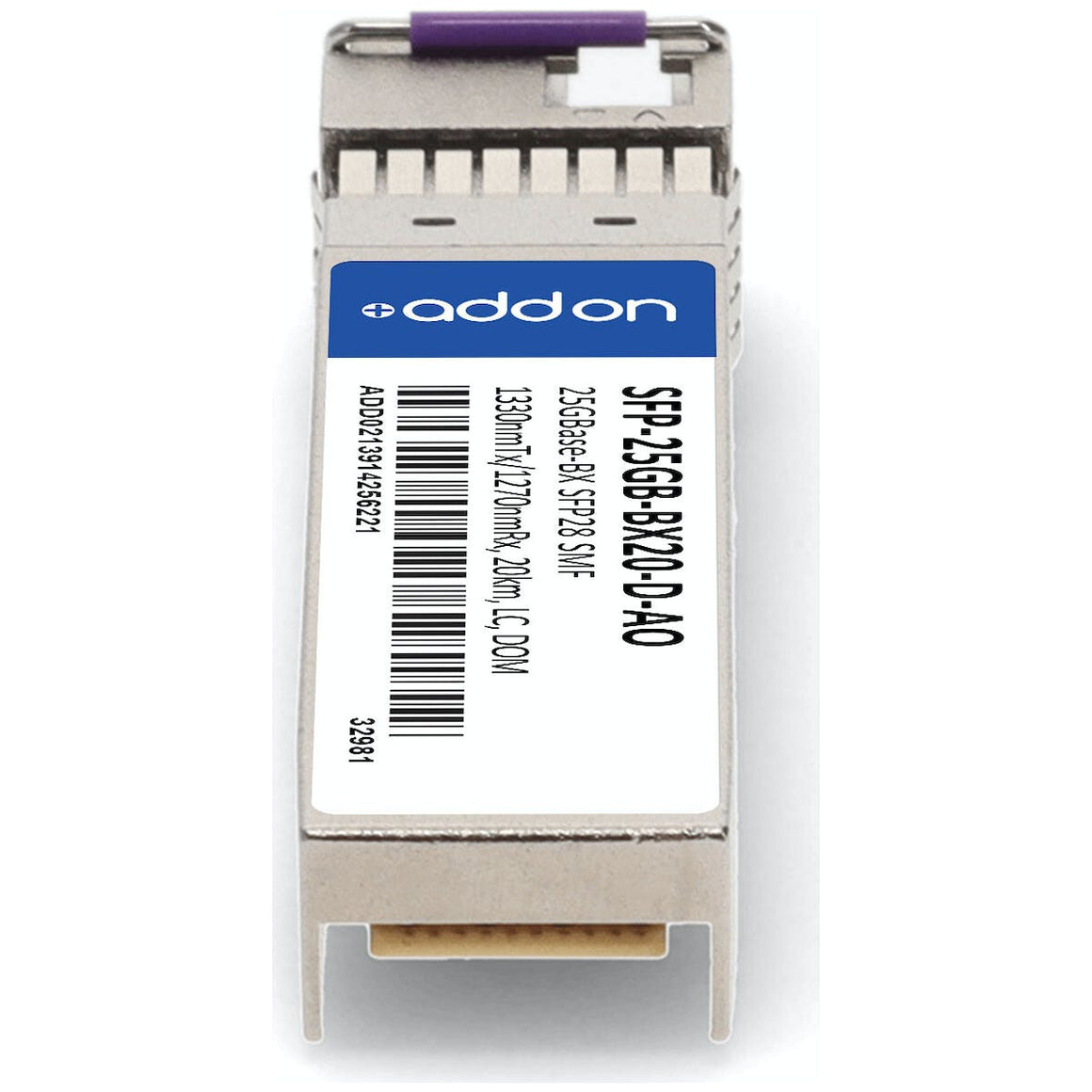 This MSA and TAA compliant SFP28 transceiver provides 25GBase-BX throughput up to 20km over single-mode fiber (SMF) using a wavelength of 1330nmTx/1270nmRx via an LC connector. This bidirectional unit must be used with another transceiver or network appliance of complementing wavelengths. It is guaranteed to be 100% compatible with the equivalent MSA compliant® transceiver. This easy to install, hot swappable transceiver has been programmed, uniquely serialized and data-traffic and application tested to ensure that it will initialize and perform identically. Digital optical monitoring (DOM) support is also present to allow access to real-time operating parameters. This transceiver is Trade Agreements Act (TAA) compliant. We stand behind the quality of our products and proudly offer a limited lifetime warranty.