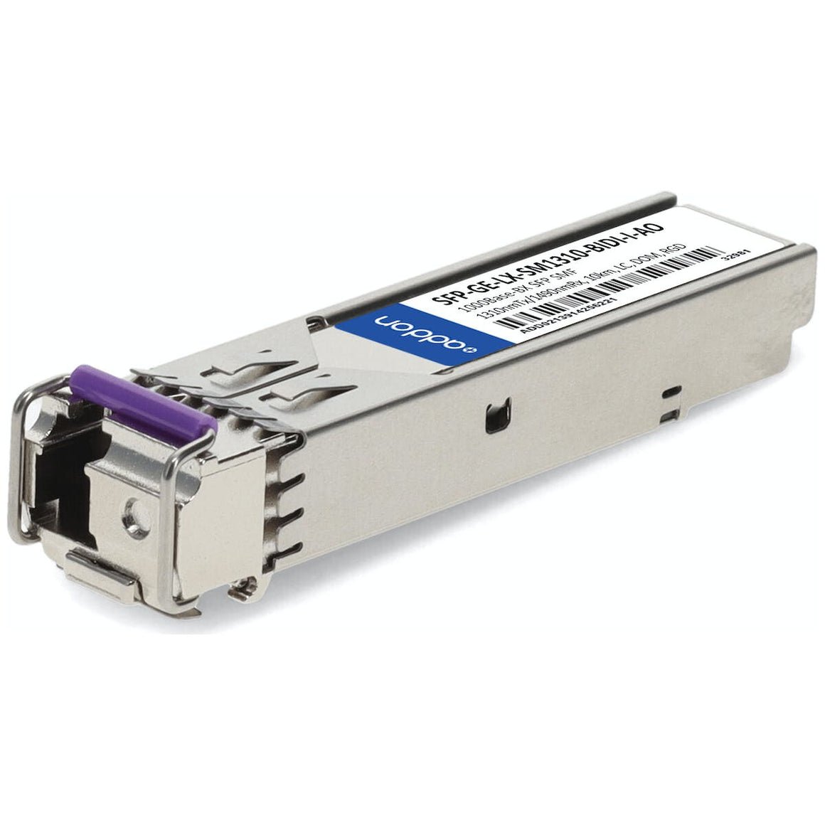 This Huawei SFP-GE-LX-SM1310-BIDI-I compatible SFP transceiver provides 1000Base-BX throughput up to 10km over single-mode fiber (SMF) using a wavelength of 1310nmTx/1490nmRx via an LC connector. This bidirectional unit must be used with another transceiver or network appliance of complementing wavelengths. It can operate at temperatures between -40 and 85C. It is guaranteed to be 100% compatible with the equivalent Huawei transceiver. This easy to install, hot swappable transceiver has been programmed, uniquely serialized and data-traffic and application tested to ensure that it will initialize and perform identically. Digital optical monitoring (DOM) support is also present to allow access to real-time operating parameters. This transceiver is Trade Agreements Act (TAA) compliant. We stand behind the quality of our products and proudly offer a limited lifetime warranty.