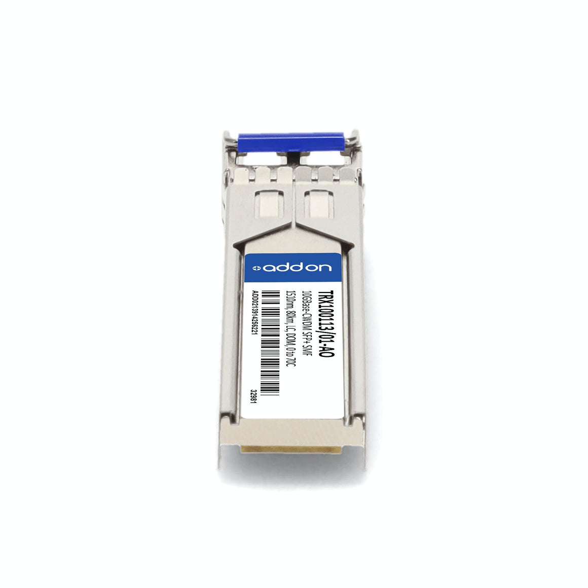This Infinera® TRX100113/01 compatible SFP+ transceiver provides 10GBase-CWDM throughput up to 80km over single-mode fiber (SMF) using a wavelength of 1510nm via an LC connector. It is guaranteed to be 100% compatible with the equivalent Infinera® transceiver. This easy to install, hot swappable transceiver has been programmed, uniquely serialized and data-traffic and application tested to ensure that it will initialize and perform identically. Digital optical monitoring (DOM) support is also present to allow access to real-time operating parameters. This transceiver is Trade Agreements Act (TAA) compliant. We stand behind the quality of our products and proudly offer a limited lifetime warranty.