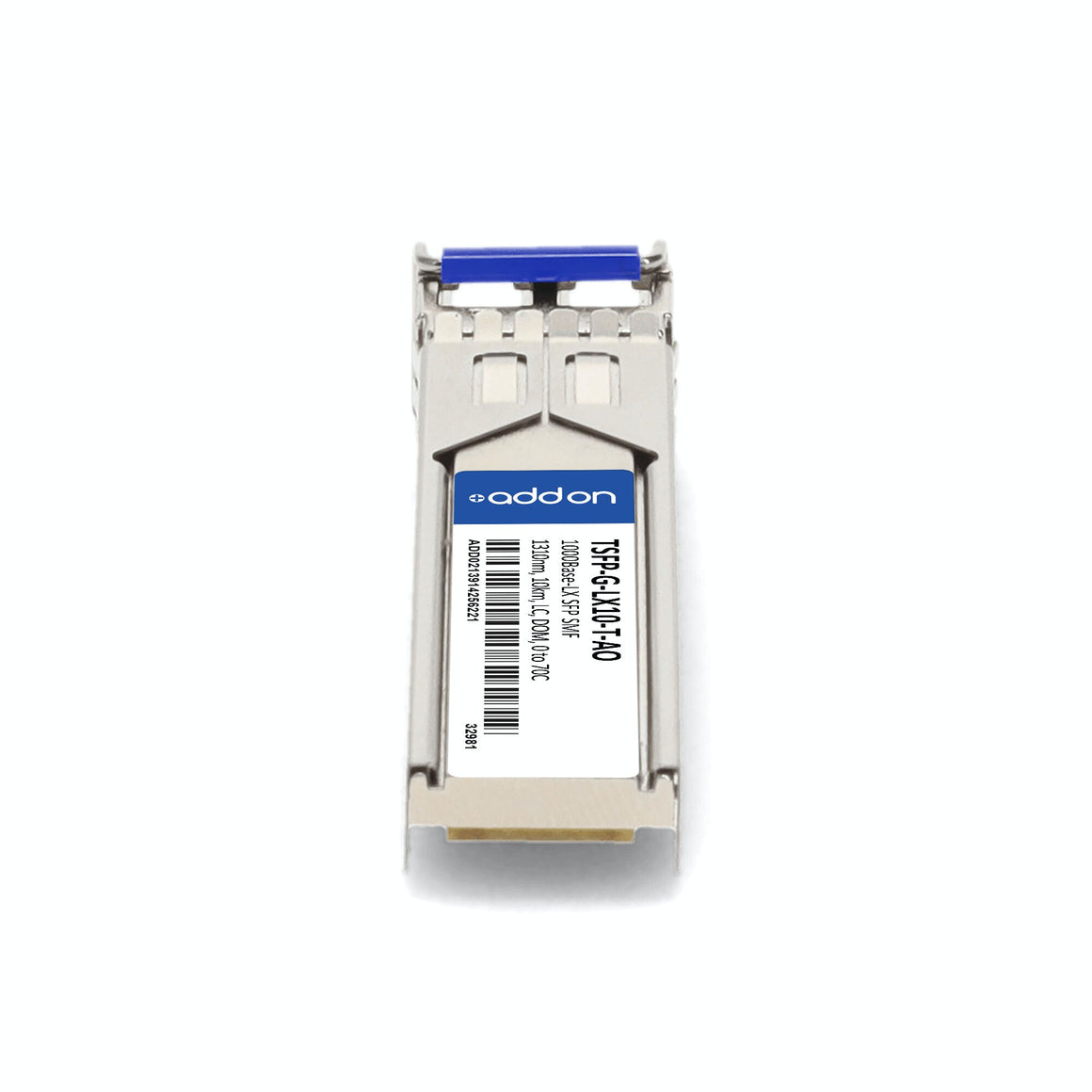 This ISON Tech® TSFP-G-LX10-T compatible SFP transceiver provides 1000Base-LX throughput up to 10km over single-mode fiber (SMF) using a wavelength of 1310nm via an LC connector. It is guaranteed to be 100% compatible with the equivalent ISON Tech® transceiver. This easy to install, hot swappable transceiver has been programmed, uniquely serialized and data-traffic and application tested to ensure that it will initialize and perform identically. Digital optical monitoring (DOM) support is also present to allow access to real-time operating parameters. This transceiver is Trade Agreements Act (TAA) compliant. We stand behind the quality of our products and proudly offer a limited lifetime warranty.