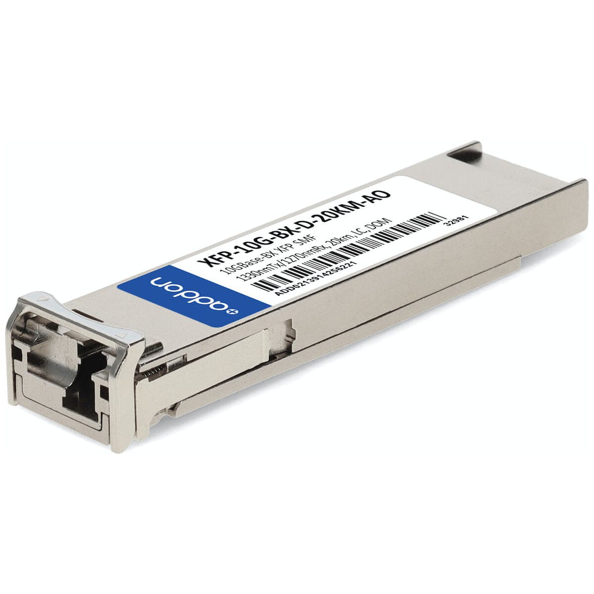 This MSA compliant XFP transceiver provides 10GBase-BX throughput up to 20km over single-mode fiber (SMF) using a wavelength of 1330nmTx/1270nmRx via an LC connector. This bidirectional unit must be used with another transceiver or network appliance of complementing wavelengths. It is built to MSA standards and is uniquely serialized and data-traffic and application tested to ensure that they will integrate into your network seamlessly. Digital optical monitoring (DOM) support is also present to allow access to real-time operating parameters. This transceiver is Trade Agreements Act (TAA) compliant. We stand behind the quality of our products and proudly offer a limited lifetime warranty.