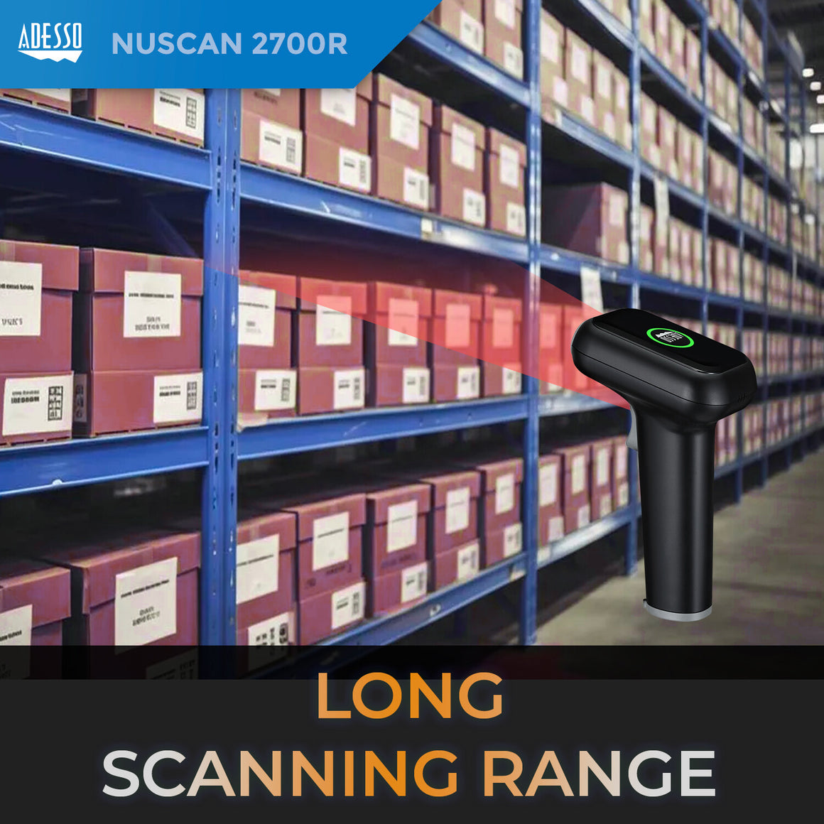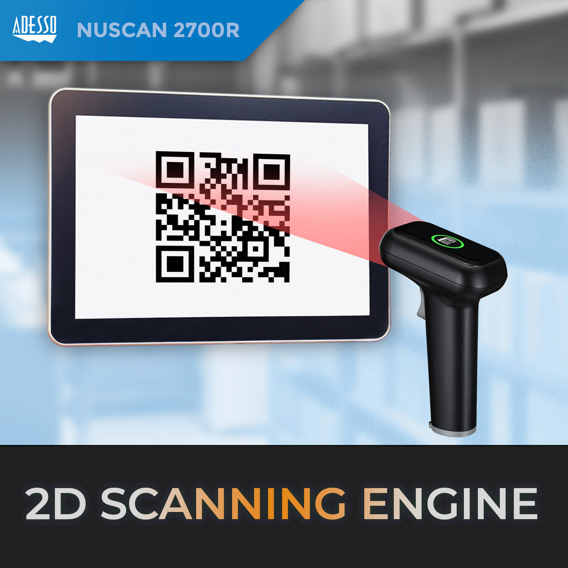 The Adesso NuScan 2700R is the ultimate wireless barcode scanning solution. Its new decoding engine allows it to decode both 2D barcodes, such as QR Code, PDF417, and Data Matrix, and 1D barcodes. The scanning rate of 120 scans per second increases accuracy, therefore increasing efficiency. The 2.4 GHz RF technology provides a wireless range of up to 150 feet. Its built-in USB receiver also makes the scanner completely Plug-n-Play!