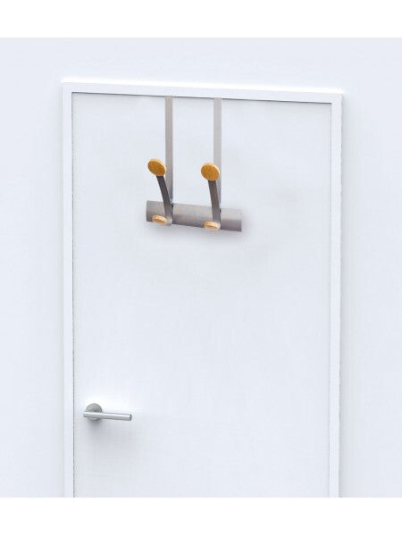 This over the door coat hook comprises two double hooks with two wooden rounded pegs, two wooden coat hooks for accessories and two door hanging hooks.