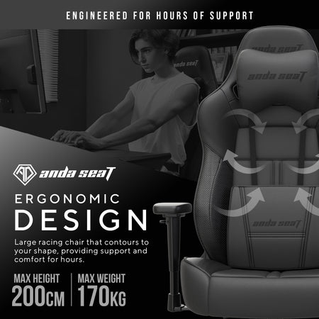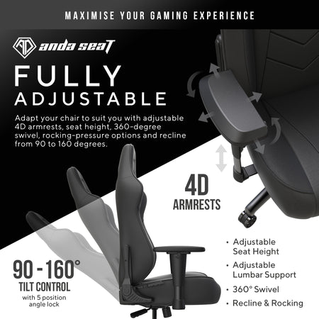 Built with you in mind the anda seaT Dark Demon Dragon is designed for those long gaming sessions. Rigged with premium PVC leather and high-density one-piece memory foam. The luxurious, ergonomic design guarantees all-day comfort with a H-shaped headrest pillow and large lumbar cushion. The 4D armrests for optimum posture support. Adjust the height with high performance Hydraulic Nitrogen Pistons. Find your perfect fit with the 90-160 backrest tilt, equipped with 5 angle lock positions. Perfect for your home office, living room or bedroom. Smooth bonded PVC leather computer desk chair. Scratch and stain resistant, Anda Seat produce perfect gaming chairs for adults or kids. As a previous race car seat manufacturer for BMW & Mercedes Benz, we insist on using the exact same leather material for our gaming seats.