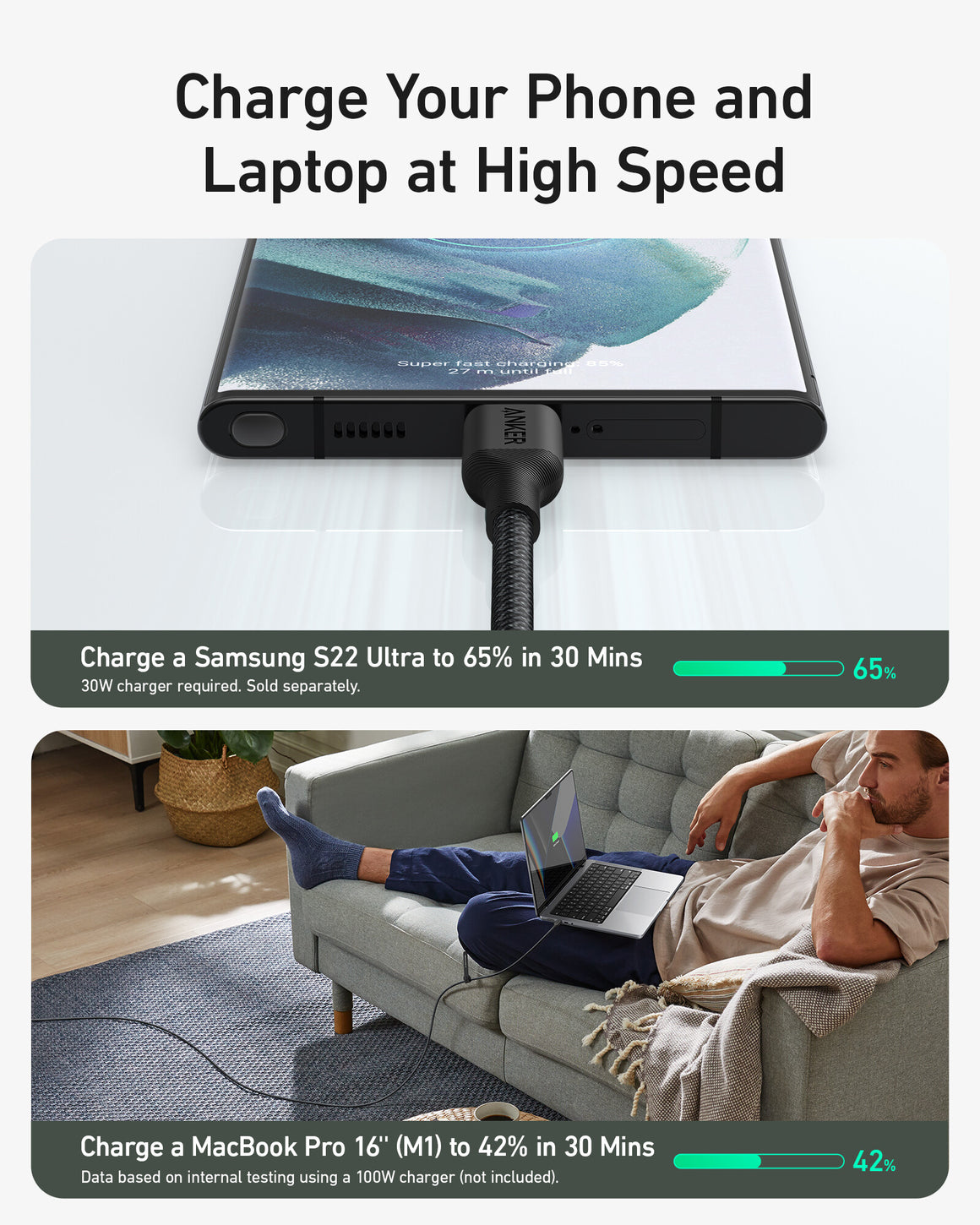 Whether you have a laptop, a tablet, a phone, or any other USB-C device—this cable can charge it