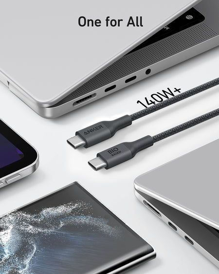 - Built with Bio-Based Nylon: 46% of the cable body exterior is made from bio-based nylon, while 34% of the connector casing is made using other bio-based materials. Using bio-based materials in our cables allows us to cut down on petroleum-based plastic such as TPE