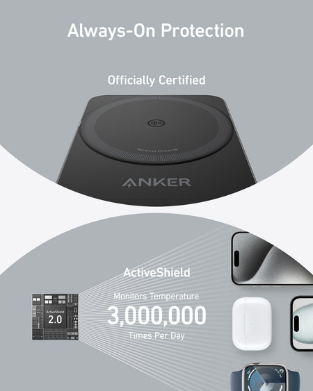 Wireless PowerIQ™, Anker's signature breakthrough in wireless fast charging, seamlessly integrates sophisticated software solutions, like smart algorithms, with powerful hardware capabilities. By focusing on maximizing efficiency and minimizing charging times, Wireless PowerIQ™️ stands out, raising the bar beyond the usual industry standards for wireless charging.