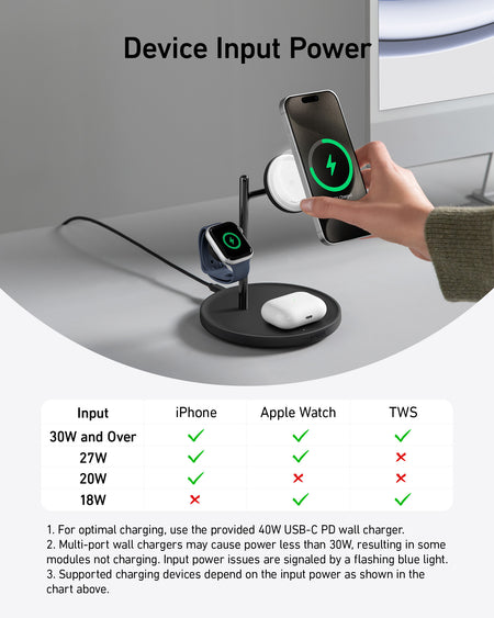 Quick Charge Advantage: Charge your Apple Watch Series 9 to 48% in just 30 minutes thanks to the MFW certification. Don't just power up; do it significantly faster and keep your devices juiced overnight. (Note: For optimal charging, use the provided 40W USB-C PD wall charger.)
