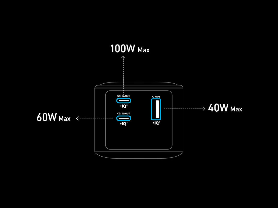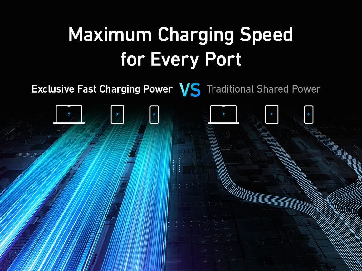 - 200W Total Output: Equipped with two high-powered USB-C ports and one USB-A port totaling 200W output, quickly charge two laptops simultaneously at 100W each for maximum efficiency.