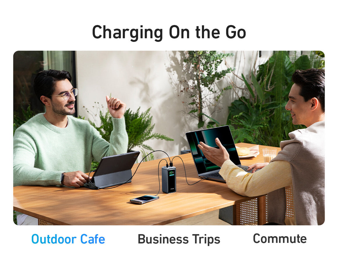 - Lightning-Fast Recharge: The 100W rapid recharge via the USB-C port enables the power bank to be fully recharged in 1 hour and 15 minutes.