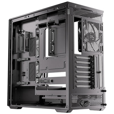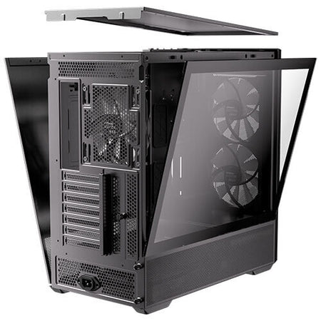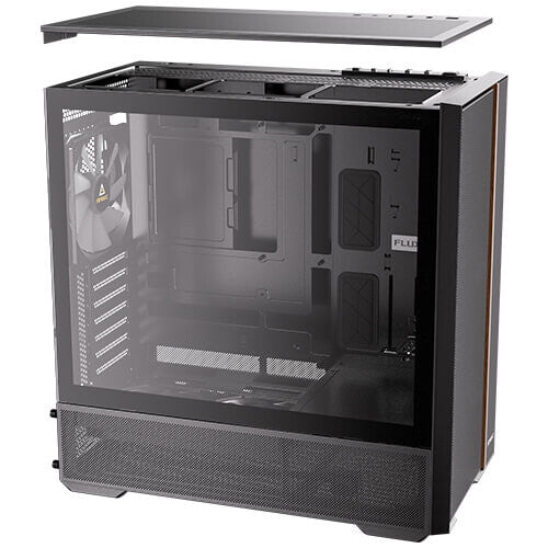 Multi-directional vent design, featuring extensive air intakes at the bottom, power supply chamber and lower sides, along with top vents and large-area mesh at the front, creating a dedicated Antec Flux airflow channel.