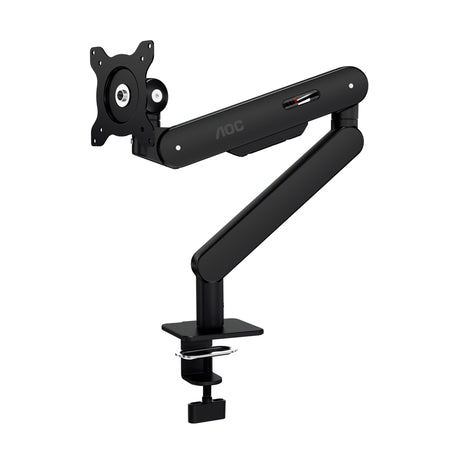 Crafted to perfection with an aluminum alloy build, the AM400B accommodates monitor sizes from 17” to 34”, with a maximum weight capacity of 9 kg. Its durable mechanical spring mechanism ensures sturdy support, while VESA compatibility (75x75, 100x100mm) allows for easy integration. Enjoy a versatile range of motion, including up to 495 mm height adjustment, up to 456 mm extension, -15°/90° tilt, -90°/90° swivel, and 360° pivot range, enhancing your workspace flexibility. Select between C Clamp or Grommet installation methods to suit your setup and elevate your ergonomic experience with the universal monitor arm AM400B.