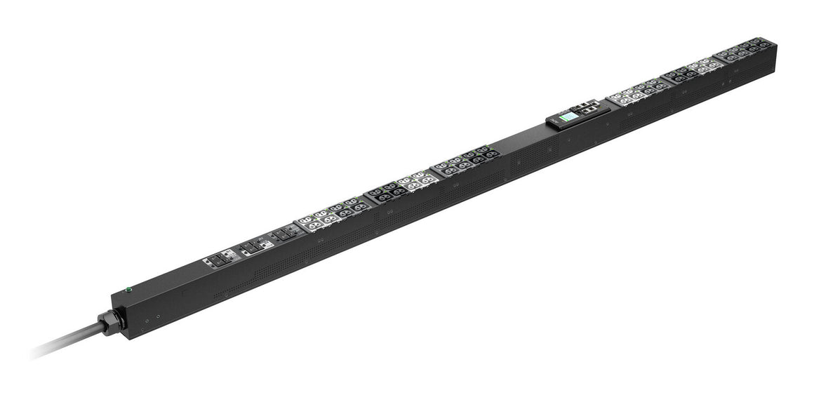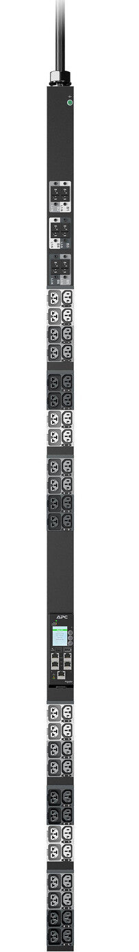 APC NetShelter Rack PDU Advanced (11K Series) provides reliable power distribution to IT equipment within server and/or networking racks. Outlet and PDU level power metering provide power visibility and notification of potential overload. 4-in-1 combination outlets which can be used as either C13, C19, C15, or C21 outlets provide unparalleled deployment flexibility. Maximum outlet density with 48 outlets in a 2.2 in. (5.6 cm) wide form factor allows for more equipment in the rack. Outlets on the PDUs are color coded and labeled by breaker. Live Swap the NMC3 to minimize downtime in the unlikely event of an NMC power event. The rack PDU integrates with EcoStruxure IT through an NMC3 and can be accessed and configured via web, SNMP, and command line interface (CLI). A 10-foot (3-meter) input cord makes it easier for the PDU to reach the power supply. Rated to operate up to 60 C (140 F) at full load ensures reliability and availability even in today's high-density deployments. One gigabit Ethernet/network port (10/100/1000) enhances and standardizes network connectivity. Two link ports are available to cascade to up to 32 PDUs, with a network port sharing (NPS) feature to enable power sharing between Rack PDUs in the cascading group. Track or bill power usage confidently with 1% metering accuracy. Two environmental sensor ports allow for optional sensors (sold separately) to be connected. For data center deployments across multiple regions, these PDUs have the following certifications: UL, CE, CSA, UKCA, Nemiko, PSE, KC, China RoHS, RCM, and CMIM. This model’s input power cord is IEC-309 32 A 3P+N+PE and features 24 count C13/C15/C19/C21 combo outlets and 24 count C13/C15 outlets.