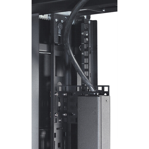 Installs in various locations within the enclosure; for example, on the vertical mounting flanges and on the vertical 0U accessory channels Provides mounting options for Rack PDUs and other small accessories