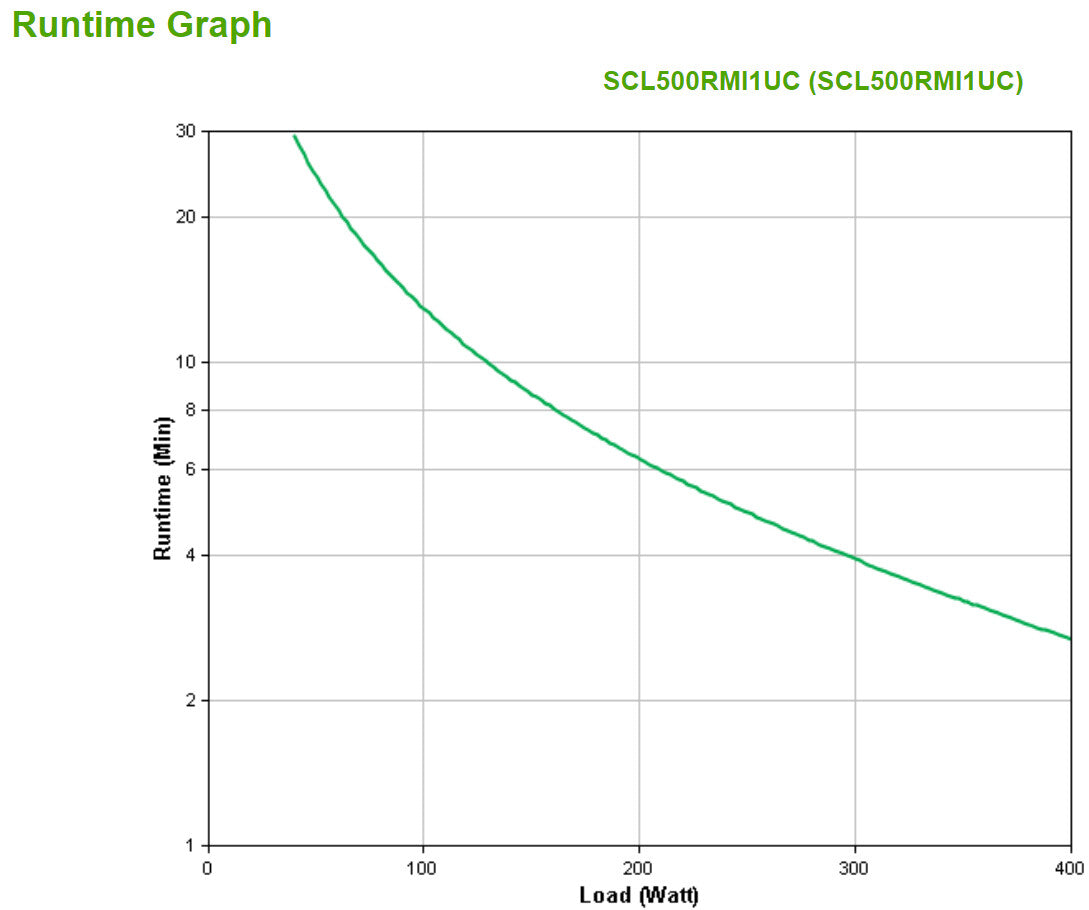 You can easily read the expected battery life in the runtime graph, which you can find between the product images. This way you can easily see how long the UPS will provide emergency power at a certain load.